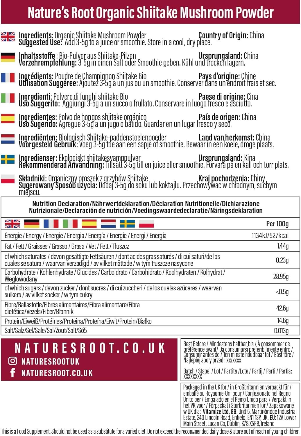Natures Root Organic Superfoods Shiitake Powder – 250g