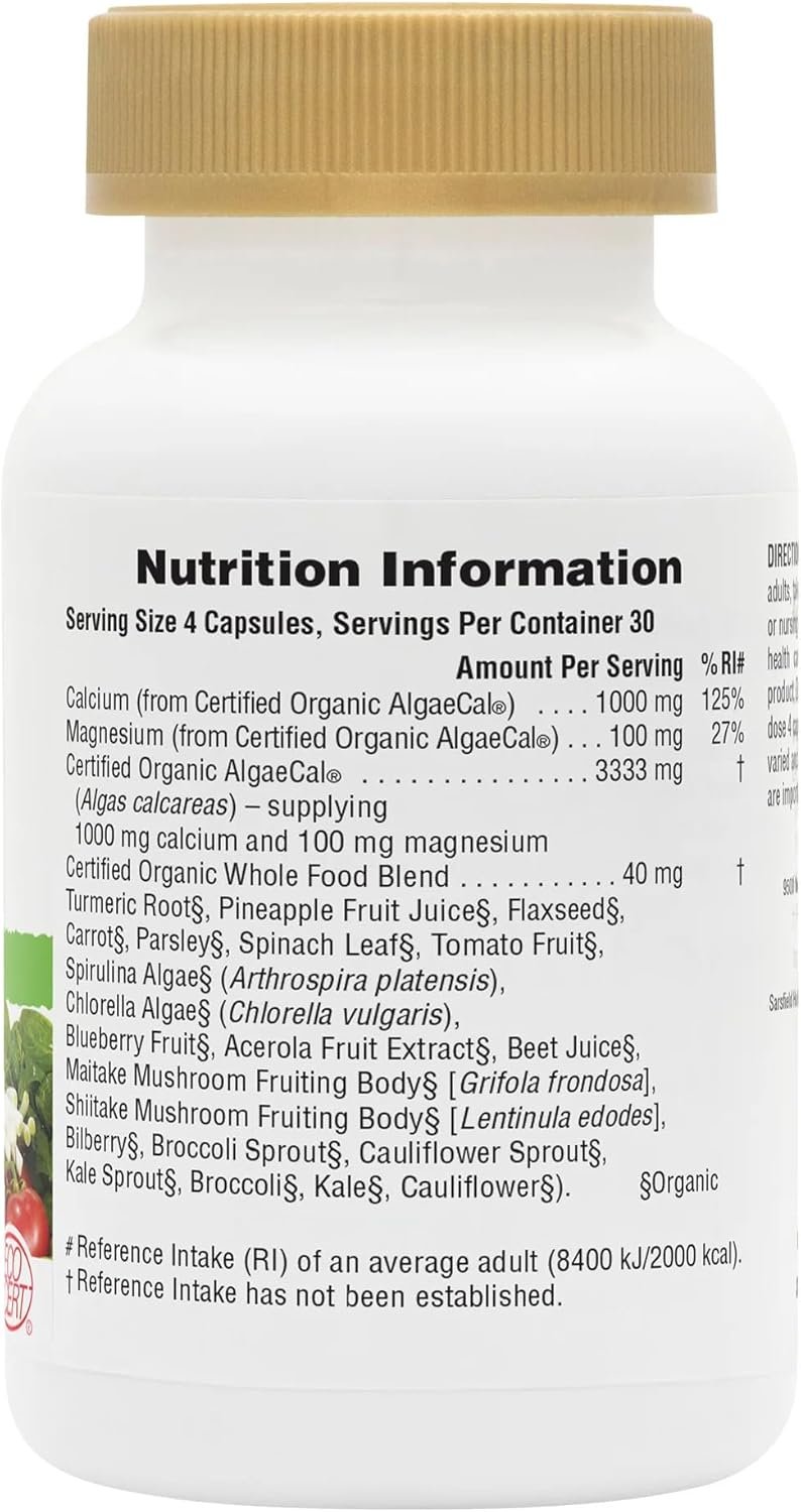 NaturesPlus Source of Life Garden Organic Calcium – AlgaeCal Calcium and Magnesium Supplement – Teeth and Bone Health – Vegan, Gluten Free – 120 Capsules