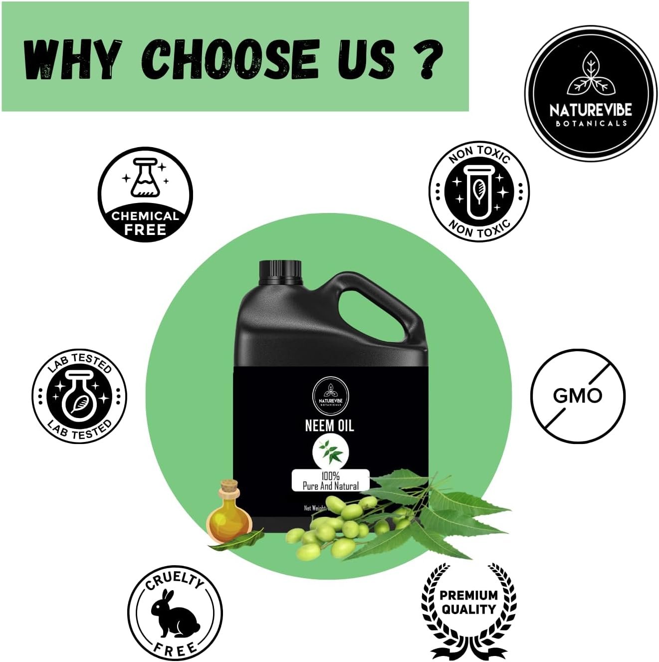 ✅Naturevibe Botanicals Neem Oil 946 ml Azadirachta Indica | 100% Pure and Natural Neem Leaf Oil | Cold Pressed and Unrefined | Great as Body Oil (946 ml)