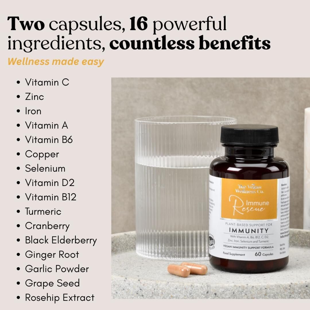 New Immune Rescue, The Vegan Wellness Co. 60 Vegan Immune Booster Capsules, Plus Turmeric for Optimal Immunity, Energy & Wellness (3)