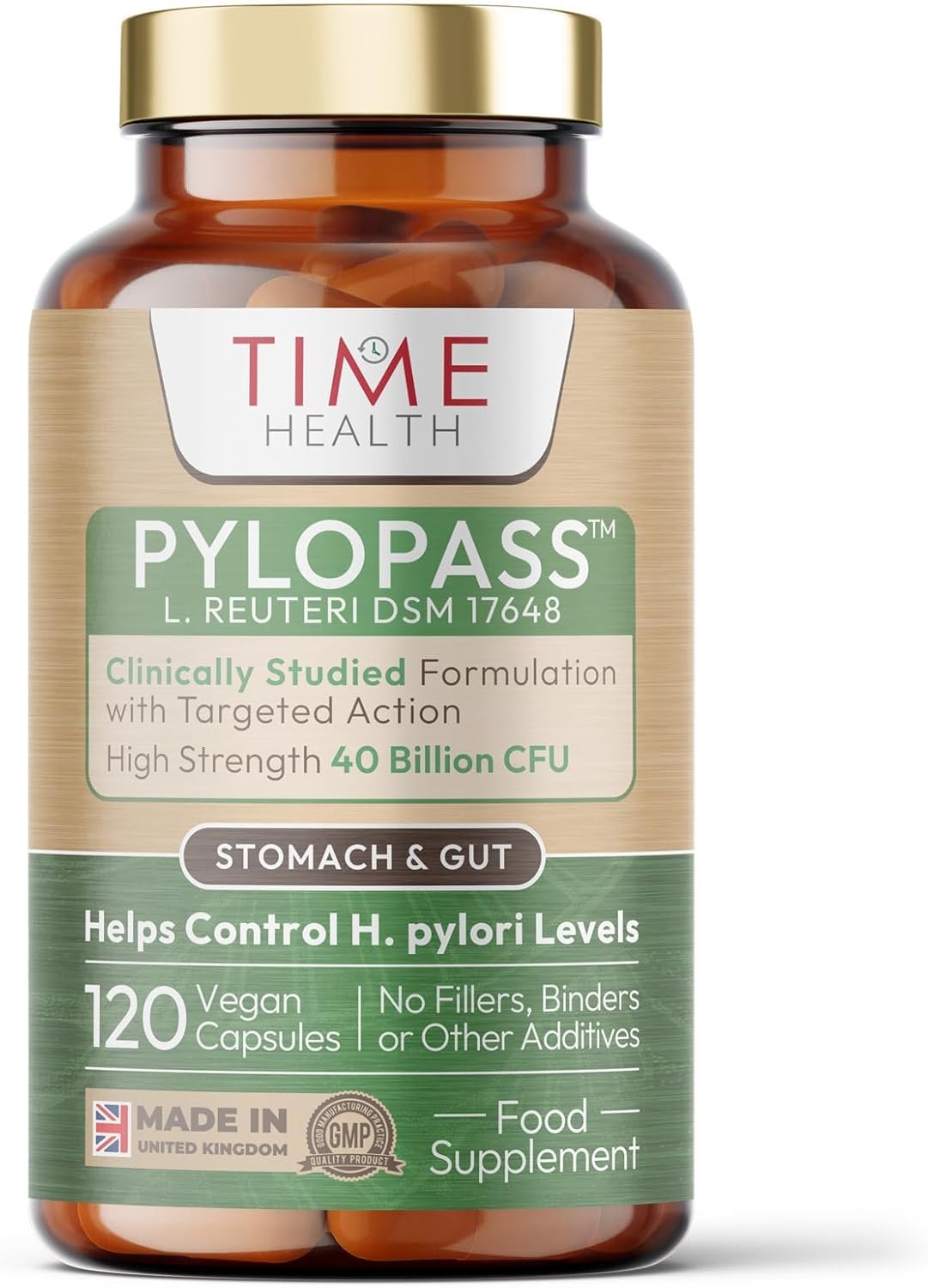 New: Pylopass™ – Lactobacillus Reuteri DSM 17648-120 Capsules – 200 Billion CFU/g – Supports Elimination of Bad Bacteria in Stomach & Gut – Clinically Verified – UK Made – GMP – No Additives