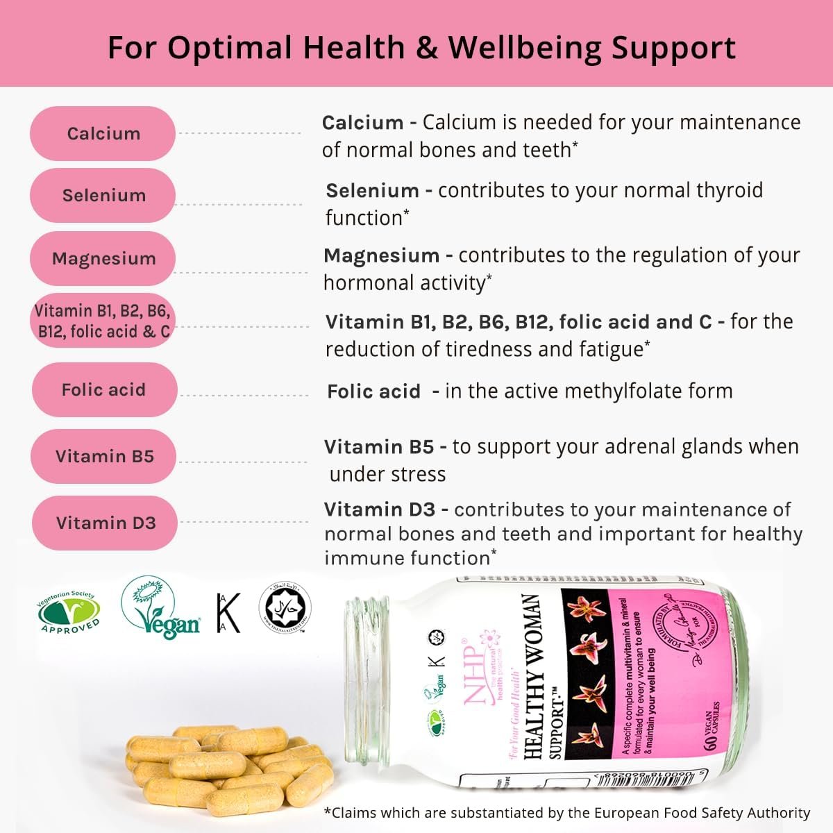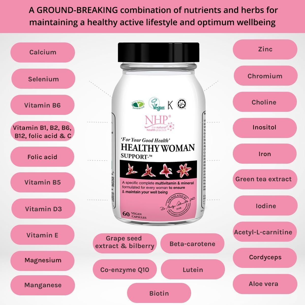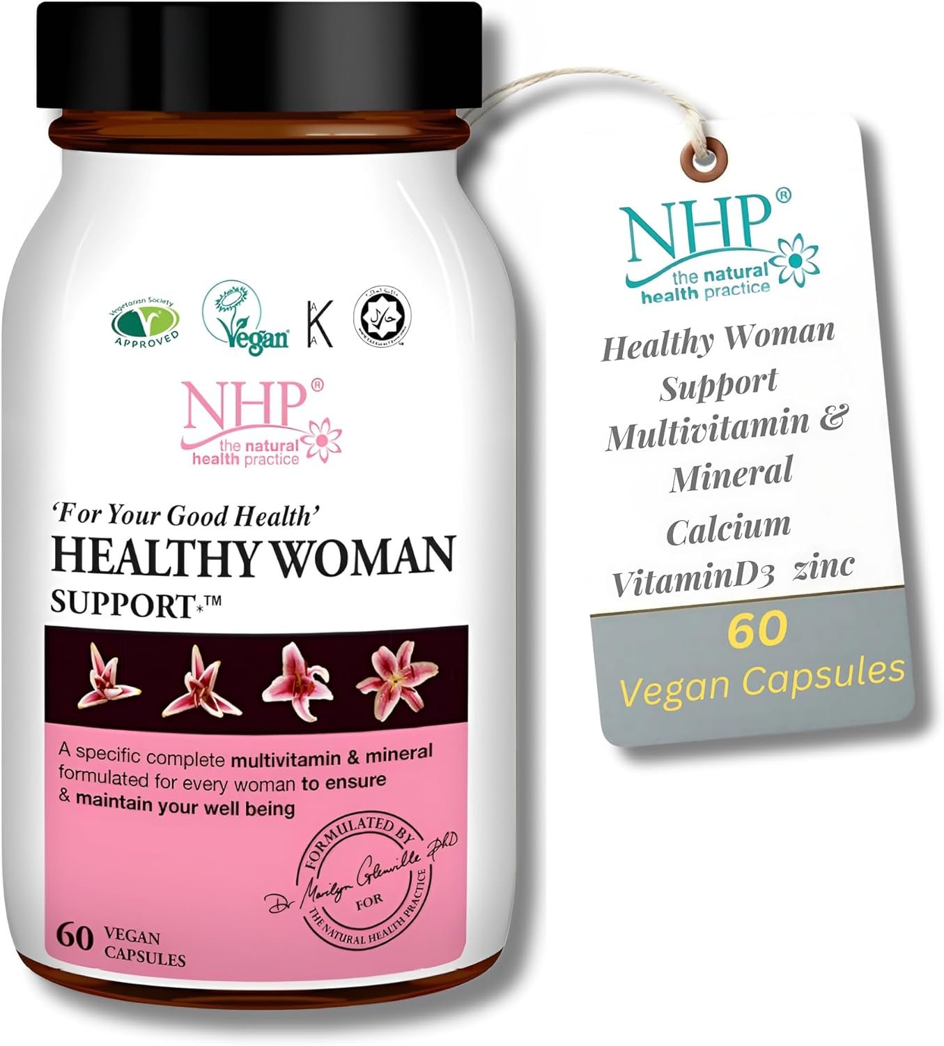 NHP Advanced Healthy Woman Support – Multivitamin & Mineral Formula for Women’s Health, Vitality, Immunity, and Wellness, Active Nutrients in Every Serving 60 Vegan Capsules