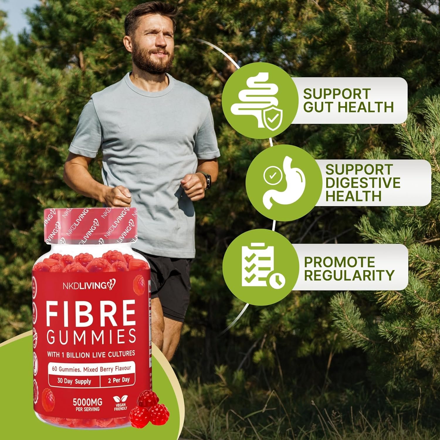 NKD Living High Fibre Inulin Gummies (60 Vegan Gummies) 5g of Fibre per Serving – with 1 Billion Live Cultures – Gut Health and Digestive System Support