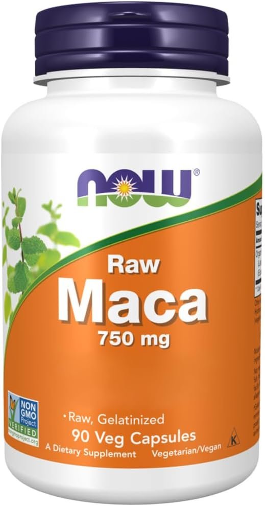 Now Foods, Raw Maca, 750mg, Maca Root, Lepidium meyenii, 90 Vegan Capsules, Lab-Tested, Soy Free, Vegetarian, Gluten Free, Non GMO