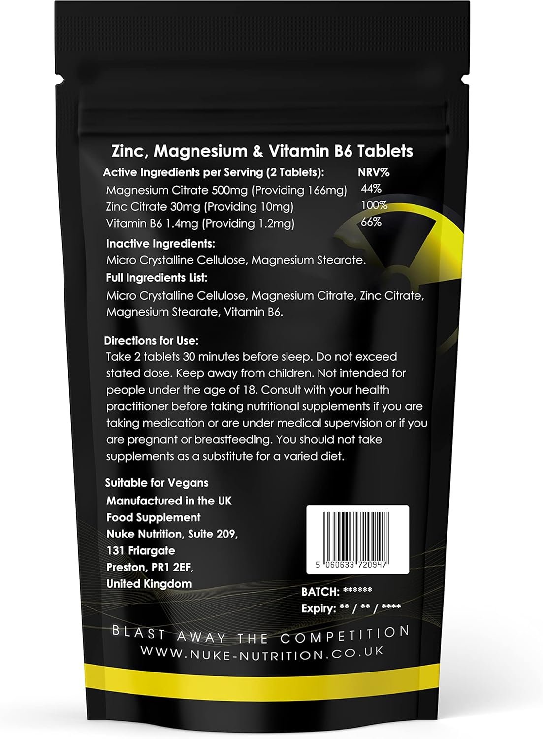 Nuke Nutrition Zinc, Magnesium & Vitamin B6 60 Tablets Supplements for Men & Women Zinc & Magnesium Tablets High Strength & Pure Zinc Magnesium & Vitamin B6 Boost Muscle Growth Sleep & Recovery