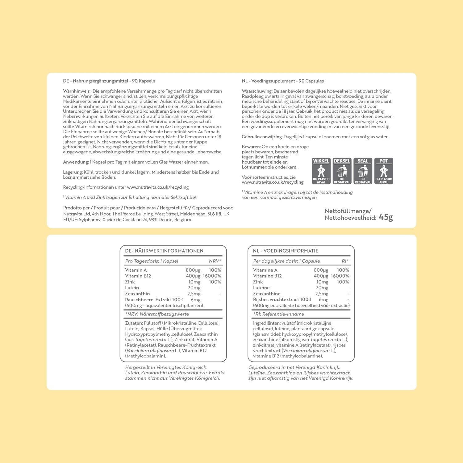 Nutravita Lutein Natural Eye Supplement – 90 Vegan Capsules – Zeaxanthin, Bilberry Extract, Vitamins A, B12 & Zinc – for Maintenance of Normal Vision – Made in The UK