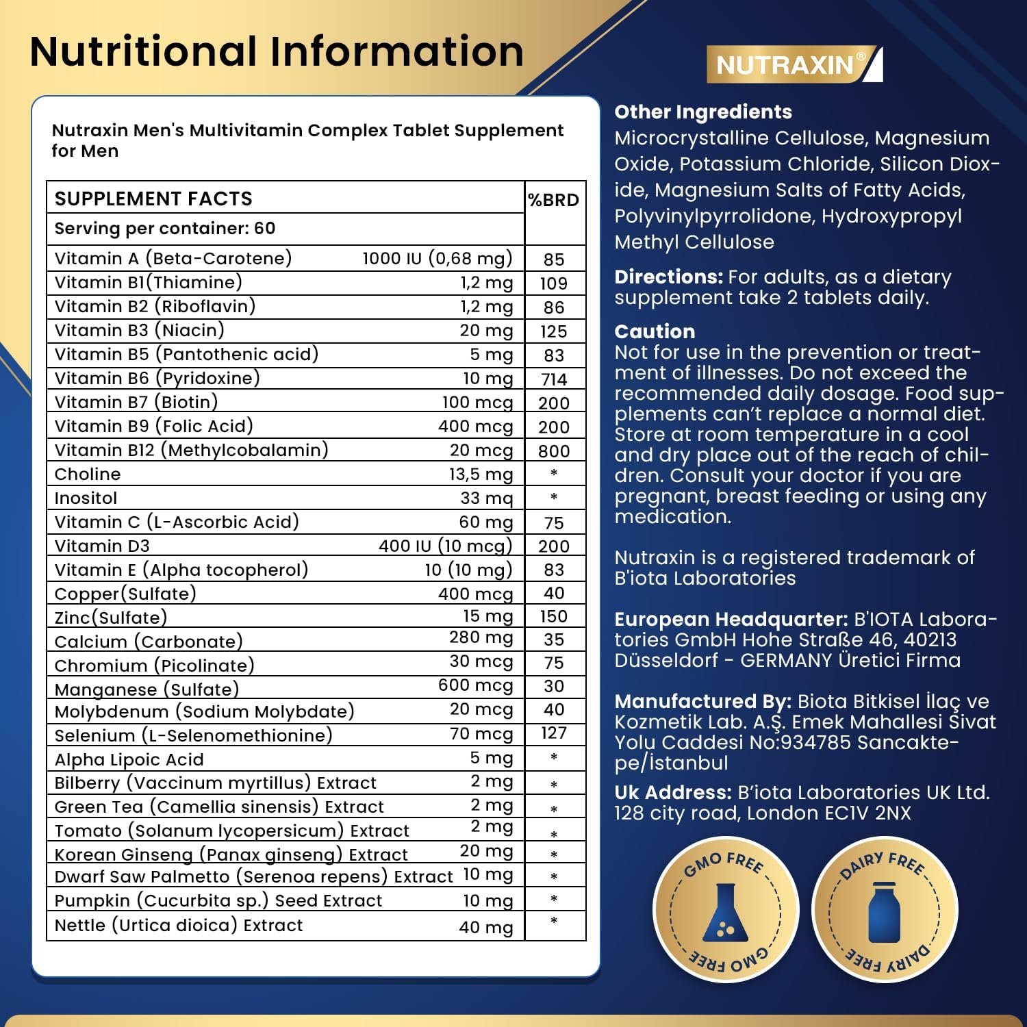 PERFECT FOR SENSITIVE DIETS: Nutraxin’s multi vitamins for men formula is free of gluten, dairy, soy, corn, sugar, and artificial additives, making it an ideal choice for those with dietary restrictions. Take these tablets daily, and fuel your body with nature’s best.