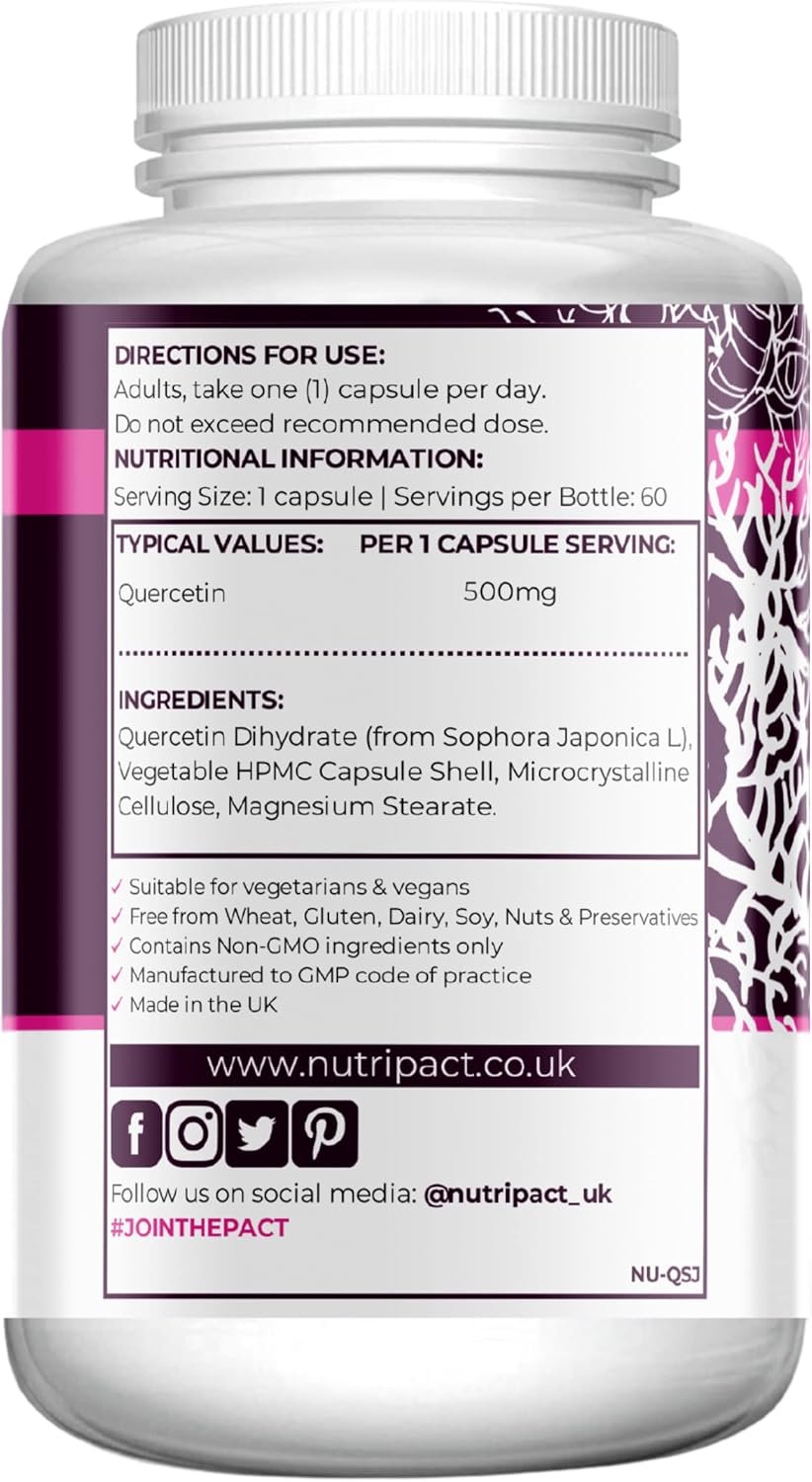 Nutripact Quercetin 500mg Supplement – High Strength Antioxidant Immune Support Pure Quercetin, One a Day Formula – Easy to Swallow – 60 Vegan Capsules – 2 Month Supply
