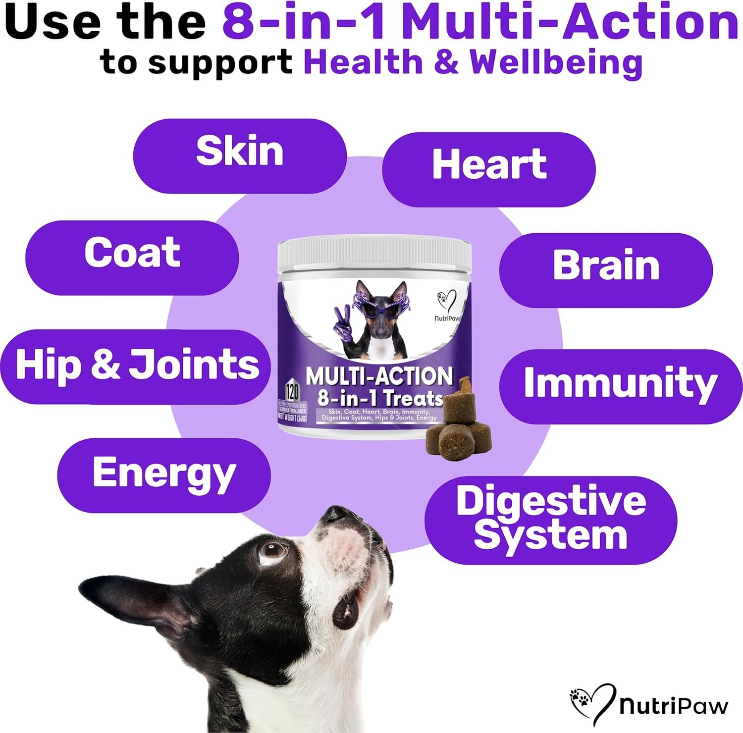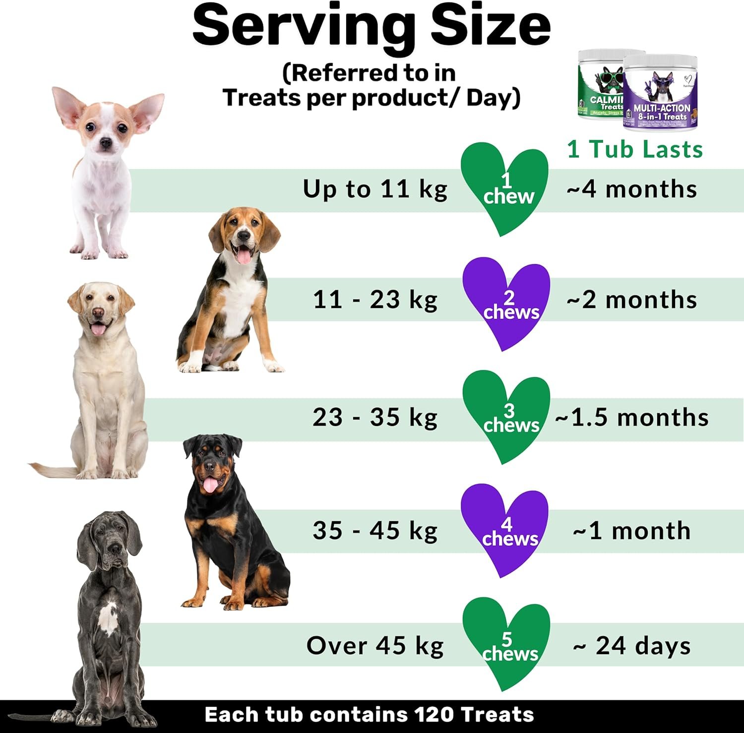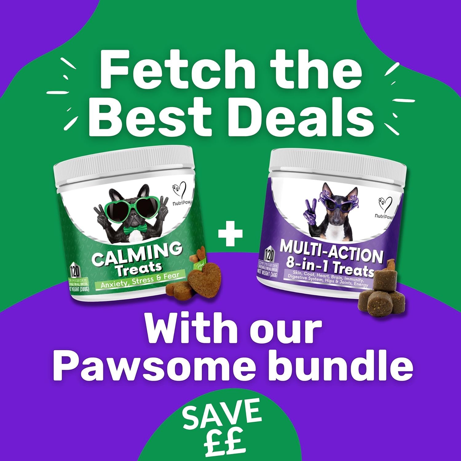 Discover NutriPaw’s Calming & Multi-Vitamin Bundle — the ultimate support for your beloved furry companion. This bundle includes two best-selling products: the Calming Chew and the 8-in-1 Vitamin Chew, both loved by over 200,000 dogs across the UK. They help your dog become more relaxed and calm, reducing their hyperactivity, barking, anxiety, and fear. The Vitamin chew helps support your dog’s Skin, Coat, Heart, Brain, Immunity, Digestive System, Hip & Joints and Energy Feed the treats at the correct serving size daily, for best results please allow up to 30 days. It is a natural product so normal not to see results in the first few weeks. We recommend increasing the quantity up to 2x if you see 0 results after 2 weeks. Every dog responds slightly differently and this increase works for most dogs.