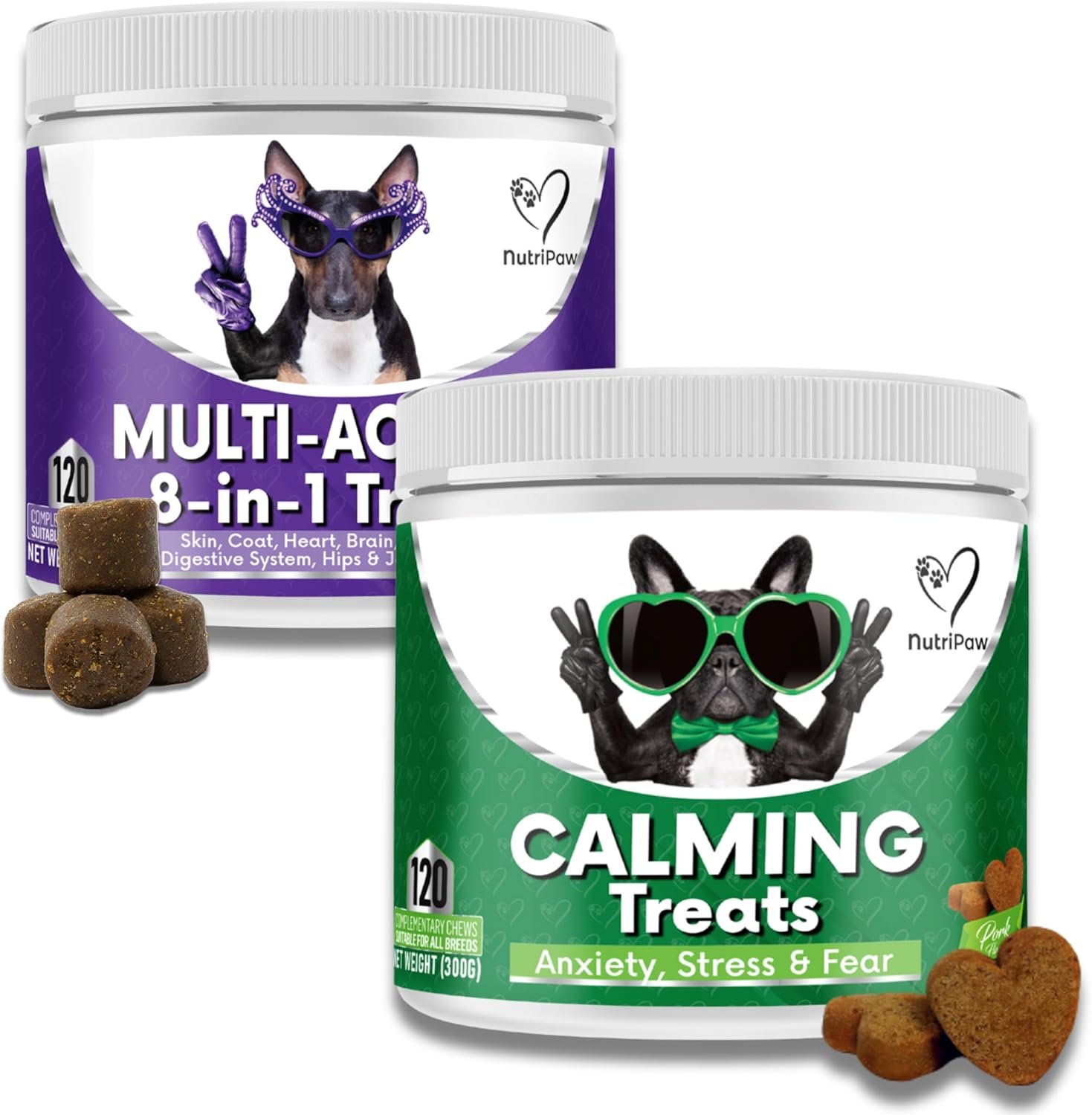 NutriPaw Calming, Multi-Vitamin Bundle – Soft Chews Reducing Anxiety, Stress, Fear, Reactivity – Non-Drowsy – Support Brain, Heart, Skin, Coat, Immunity, Digestion, Joints & Energy- Great for all dogs