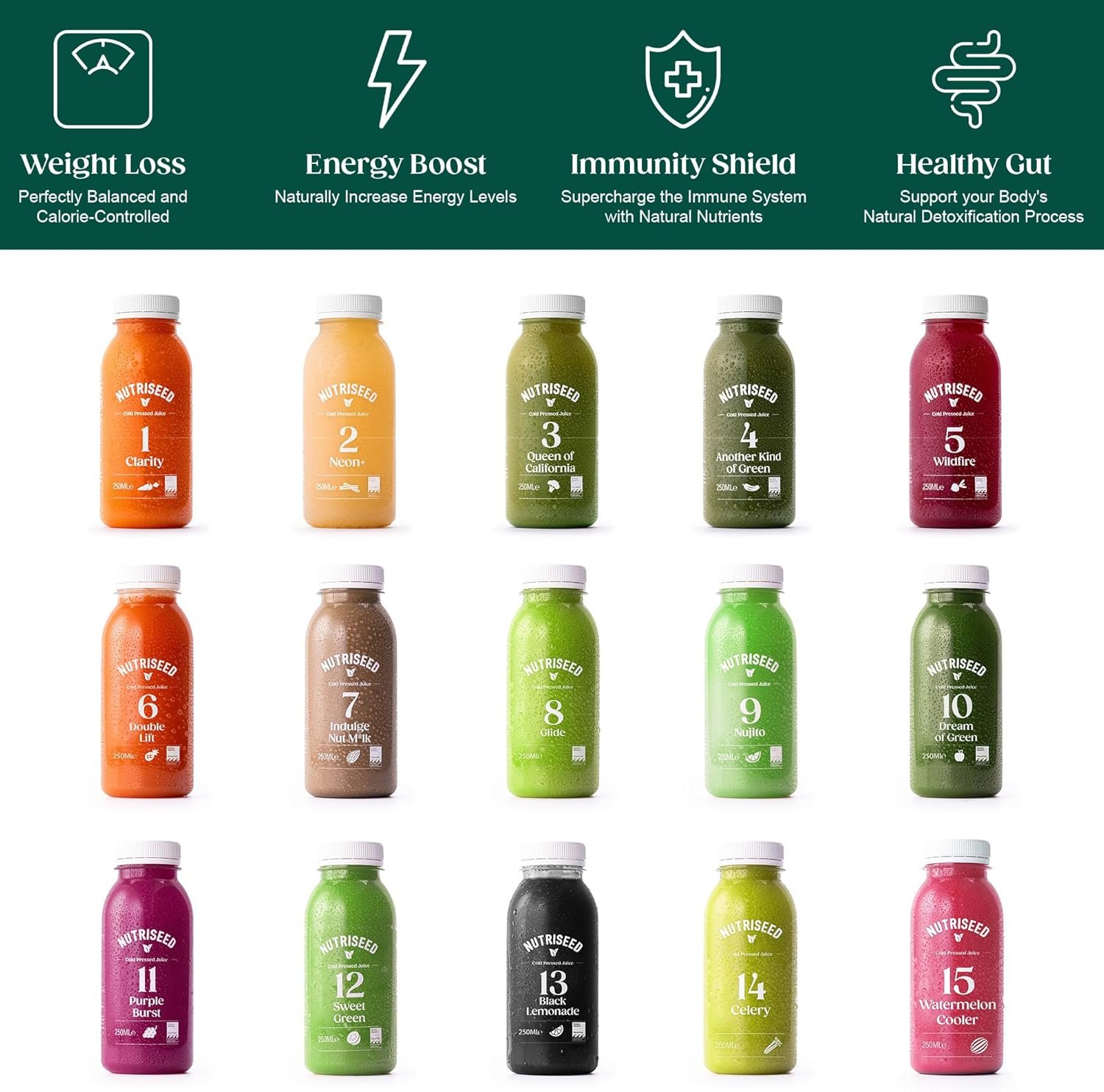 𝗪𝗲𝗶𝗴𝗵𝘁 𝗠𝗮𝗻𝗮𝗴𝗲𝗺𝗲𝗻𝘁 𝗦𝘂𝗽𝗽𝗼𝗿𝘁: All Nutriseed juices are perfectly balanced and calorie-controlled, offering optimal nutrition to initiate your weight management journey. Seamlessly incorporate them into your daily routine.