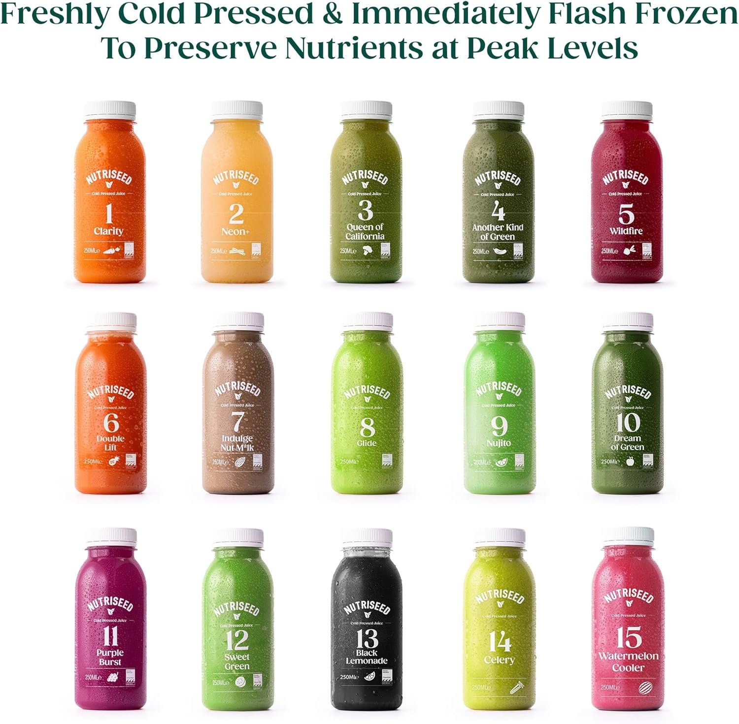 𝗡𝗼 𝗔𝗱𝗱𝗲𝗱 𝗦𝘂𝗴𝗮𝗿, 𝗣𝗿𝗲𝘀𝗲𝗿𝘃𝗮𝘁𝗶𝘃𝗲𝘀 𝗮𝗻𝗱 𝗔𝗿𝘁𝗶𝗳𝗶𝗰𝗶𝗮𝗹 𝗖𝗼𝗹𝗼𝗿𝘀: Nutriseed juice cleanses are free from added sugars, preservatives and artificial colours. Containing only the natural sugars present, providing you with only the sweetness that nature intended for you.