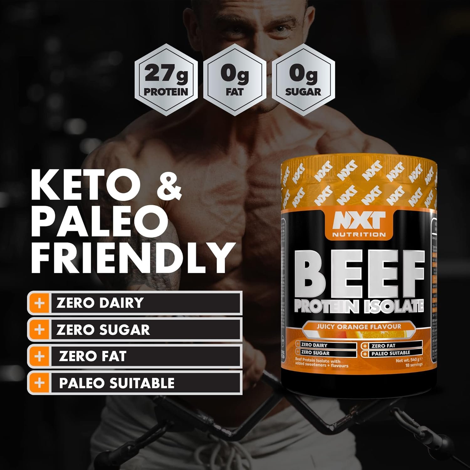 NXT Beef Protein Isolate 540g – High Protein Powder in Natural Amino Acids – Paleo, Keto Friendly – Dairy and Gluten Free | 540g (Orange)