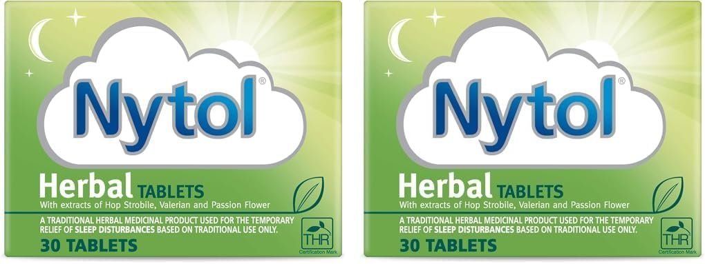 Nytol Herbal Tablets contain a blend of natural herbs to soothe and so aid restful sleep. It is ideal for you if you’re suffering from sleeplessness and you’d prefer to try a herbal remedy. The tablets contain extracts of 3 natural active ingredients. Hops are used as a sedative and to induce sleep. Valerian has been used for decades to induce sleep and promote calmness. Passion flower has traditionally been used to soothe and induce sleep. Nytol Herbal Tablets are a traditional herbal medicinal product for use in the temporary relief of sleep disturbances exclusively based upon long-standing use as a traditional remedy.Ingredients: Each film-coated tablet contains: 34 mg of extract (as dry extract) from hop strobile (Humulus Lupulus L) (4-6:1), extraction solvent: Ethanol 70% (v/v), 30.8mg of extract (as dry extract) from Valerian root (Valeriana Officinalis L) (4:1), extraction solvent: Ethanol 60% (v/v), 15.2 mg of extract (as dry extract) of passion flower herb (Passiflora Incarnata L) (5-7:1), extraction solvent: Ethanol 50% (v/v), also contains glucose. Safety Warning: Adults and children aged 12 years and over: Swallow 2 tablets with water 1 hour before you go to bed. Do not take more than the recommended dose. Do not take extra tablets if you wake up in the night. Do not exceed the stated dose. If affected, do not drive or operate machinery. Not recommended in early pregnancy or when breastfeeding.