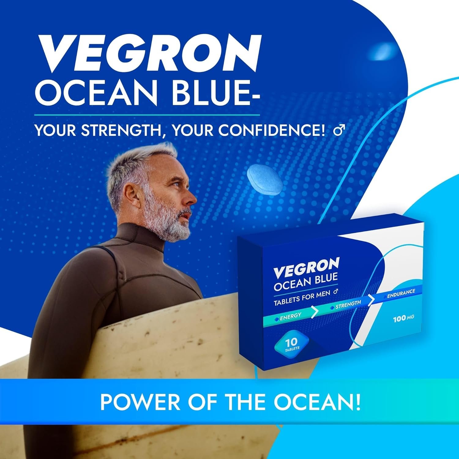 Ocean Blue – 30 Tablets – Herbal Blue Tablets for Men – 100mg – with Korean Ginseng, Maca Root, Ashwagandha & L-Arginine – Natural Energy, Strength & Endurance Supplement – Vegan & Gluten-Free