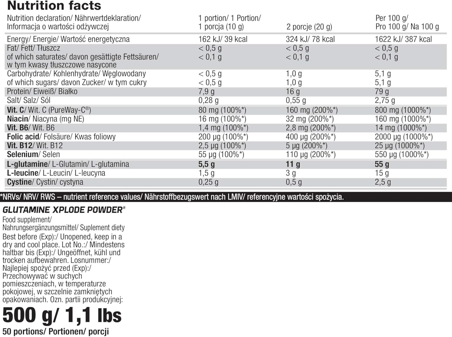 Glutamine xplode enriched with the innovative vit-a-min supercharge. A truly innovative product composed in a way which guarantees the maximum reduction of damaged muscles after a workout and the fast and effective stimulation of their regeneration. It is not the quantity, but the properly selected ingredients that are decisive for the quality and efficiency of the product. Available in pineapple flavour.