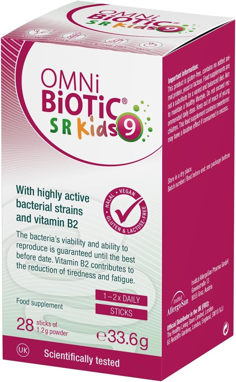 OMNi BiOTiC SR-9 Kids | Kids Probiotic with Peach Flavour | Fast Dissolve – Melts on The Tongue | 28 Sticks | Powder | Vegan & Gluten-Free | Halal | for Daily use