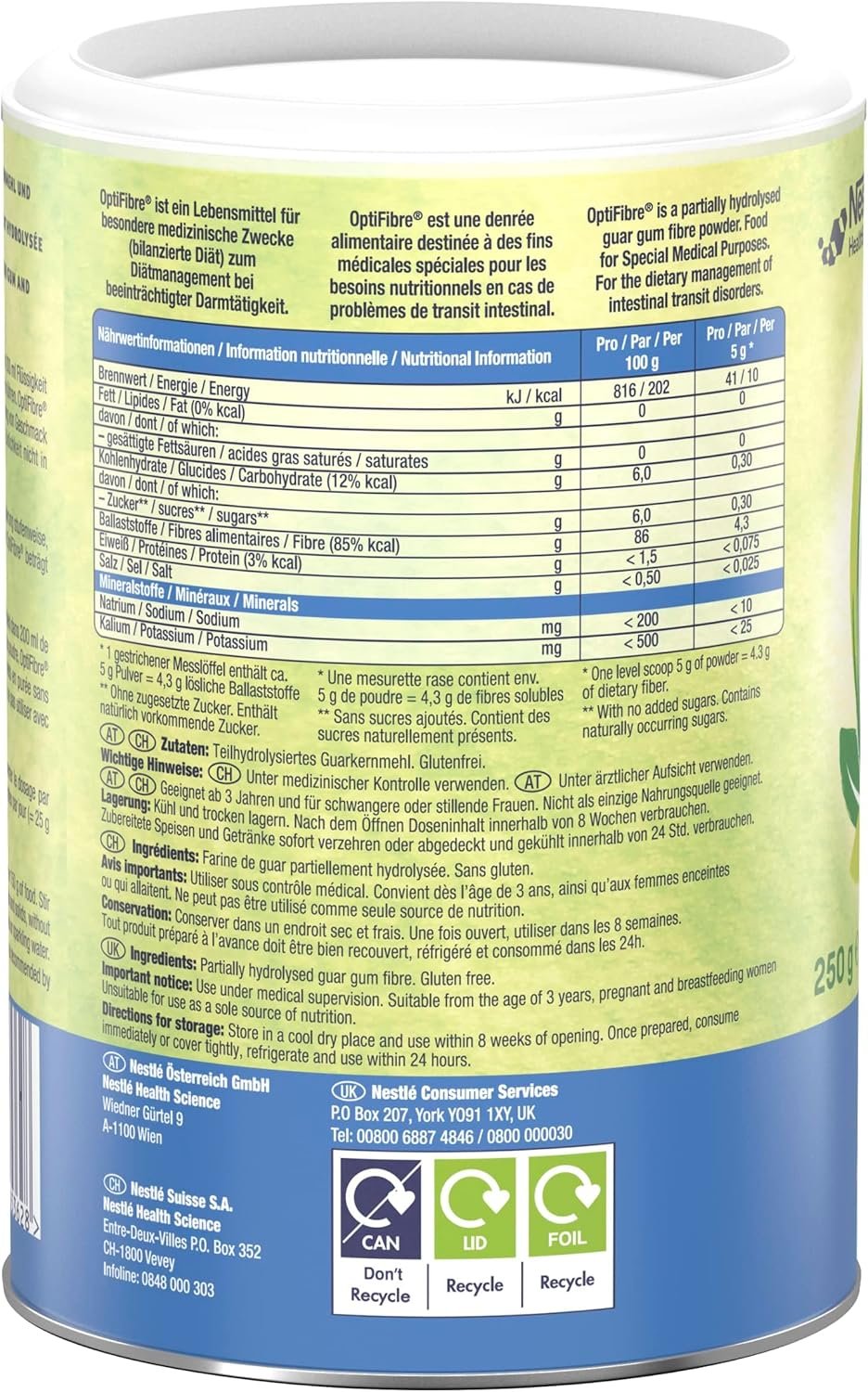 OptiFibre is a Food for Special Medical Purposes. For the dietary management of intestinal transit disorders. To be used under medical supervision.
