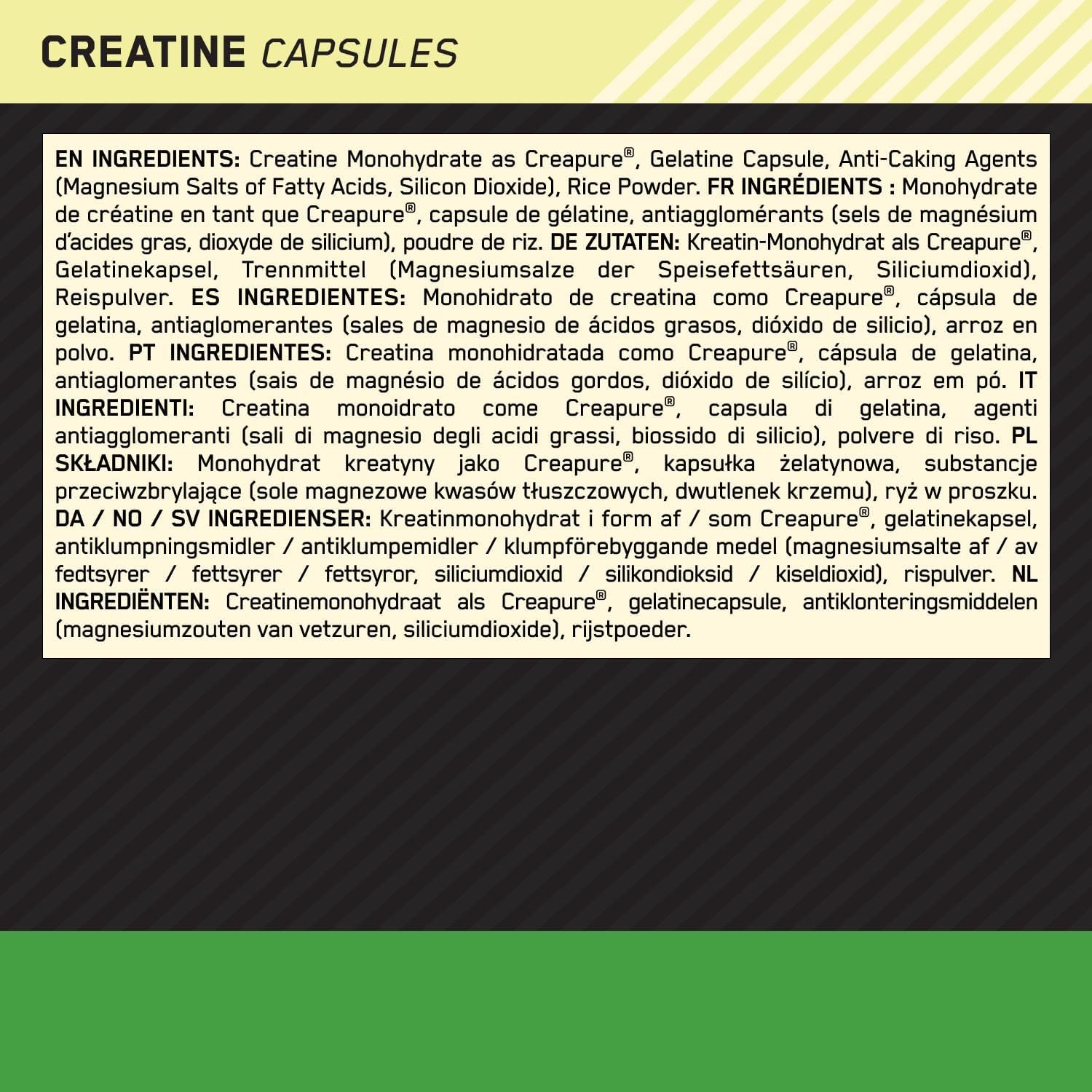 Optimum Nutrition Creatine Capsules with 2500 mg of Unflavoured Creatine Monohydrate per Serving, Creatine Food Supplement to support performance, 100 Servings, 200 Capsules