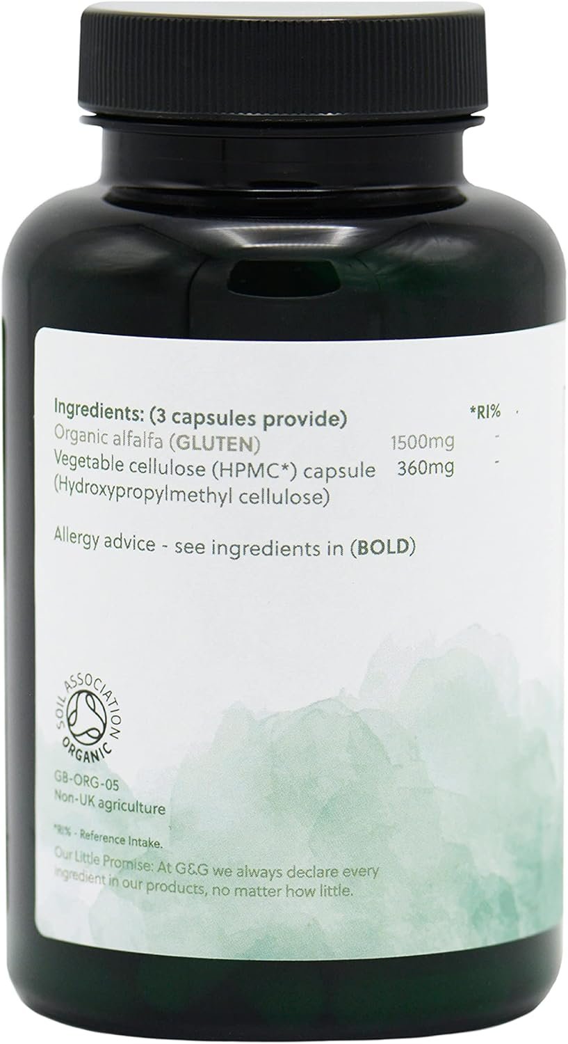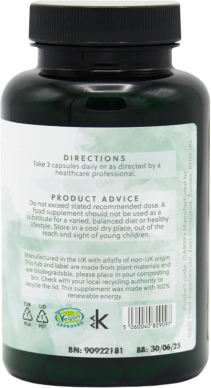 Organic Alfalfa Capsules 500mg – Botanical Rich in Vitamins, Minerals and Other Nutrients – 120 Vegan Capsules – Non-GMO, Made in The UK by G&G Vitamins