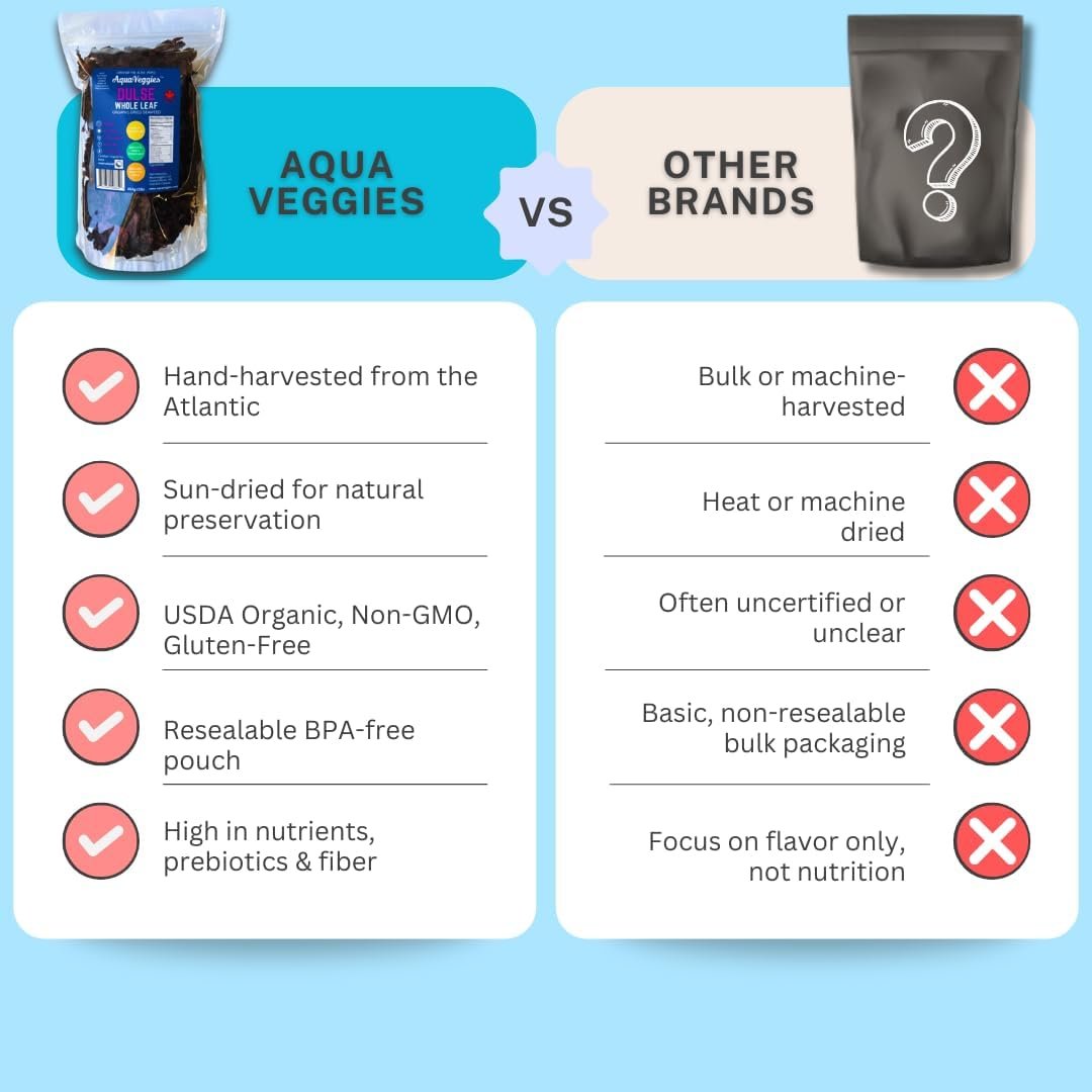 🌊 Sustainably Harvested in North America – Made in the USA Unlike imported seaweed, our dulse is wildcrafted and packed in the USA with annual safety testing. Taste the difference of true Atlantic sea vegetables.