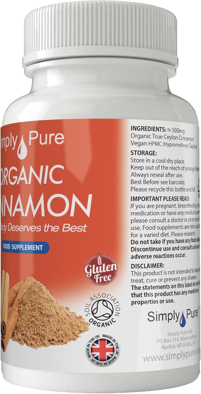 Organic Ceylon Cinnamon for Heart Health | 500mg Capsules x 90 |100% Pure Soil Association Certified | Gluten Free | GM Free | Vegan