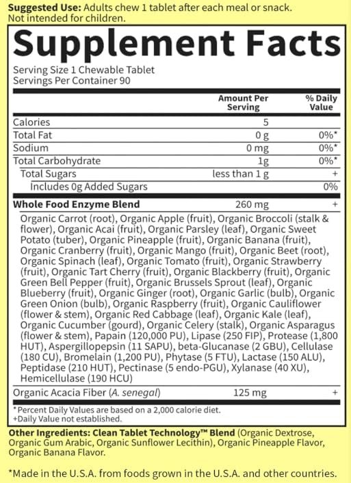 Organic Digest Enzymes, Tropical Fruit Flavor, Gluten Free, Dairy Free, 90 Chewables