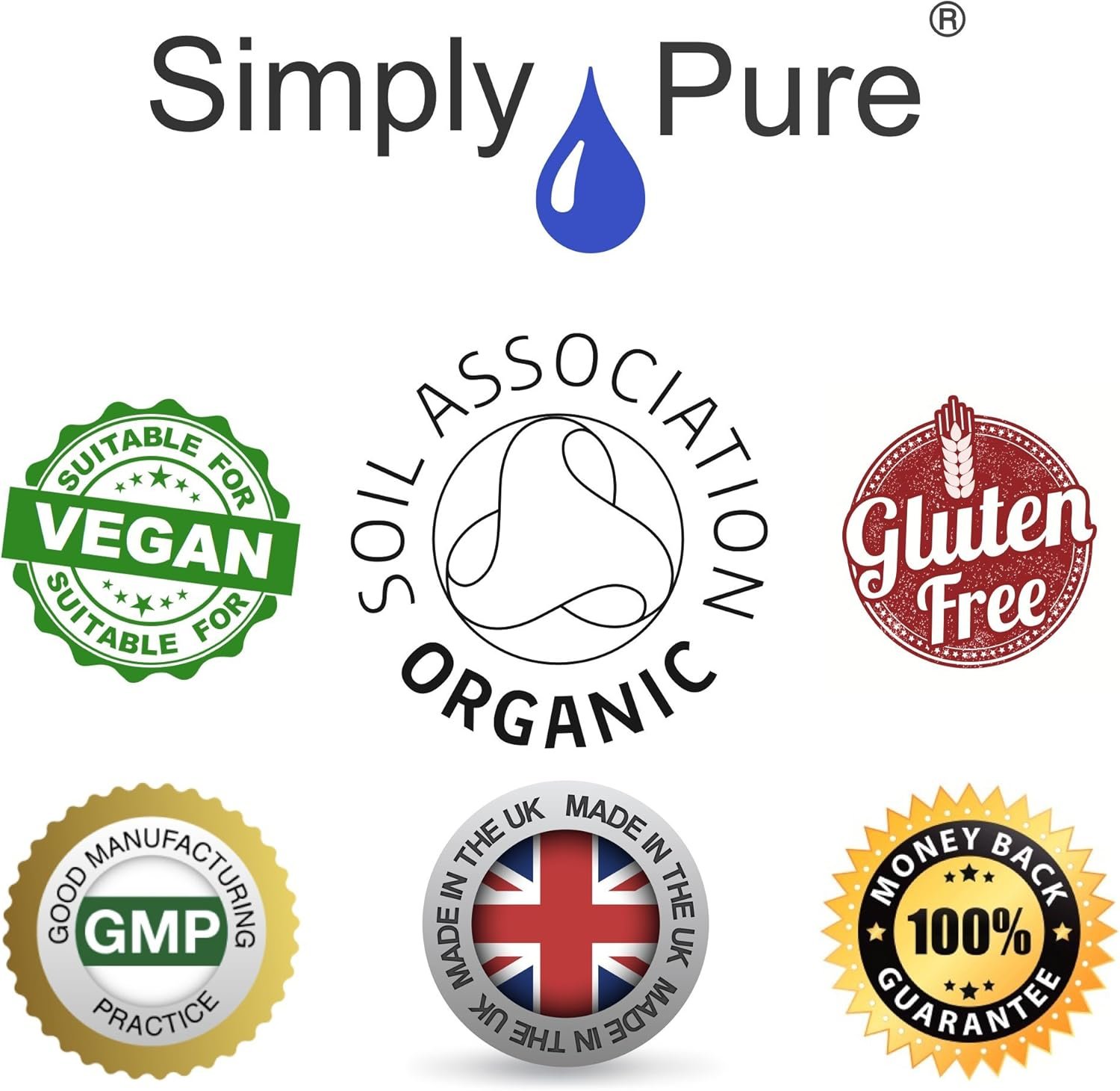 WHY CHOOSE SIMPLY PURE? Our ethos is to provide our customers with the purest and highest quality supplements possible. Our products are made by us in the UK to strict GMP standards, and most are Organic and Soil Association certified. We don’t use binders, fillers or other additives in our capsules – we are Simply Pure, because your body deserves the best.