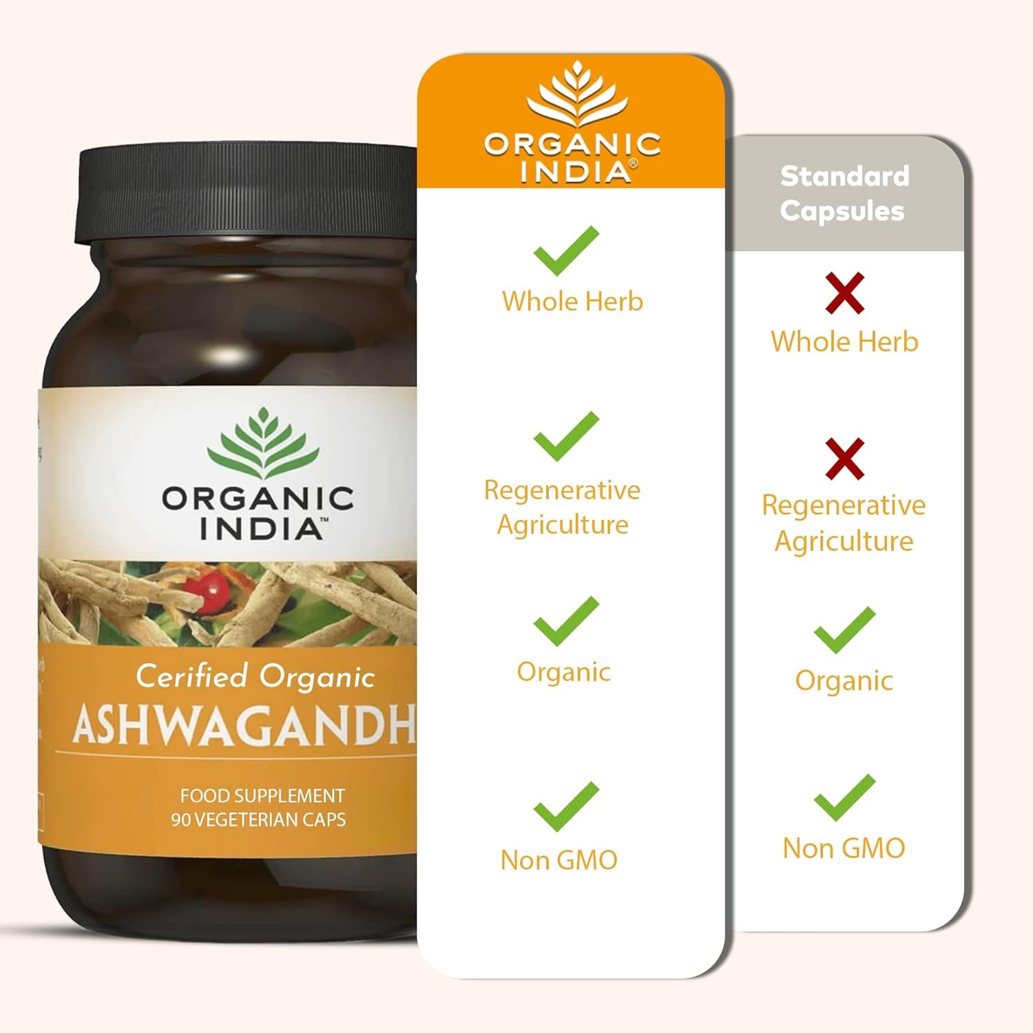 Organic India Ashwagandha, Certified Organic & Vegan, 90 Capsules