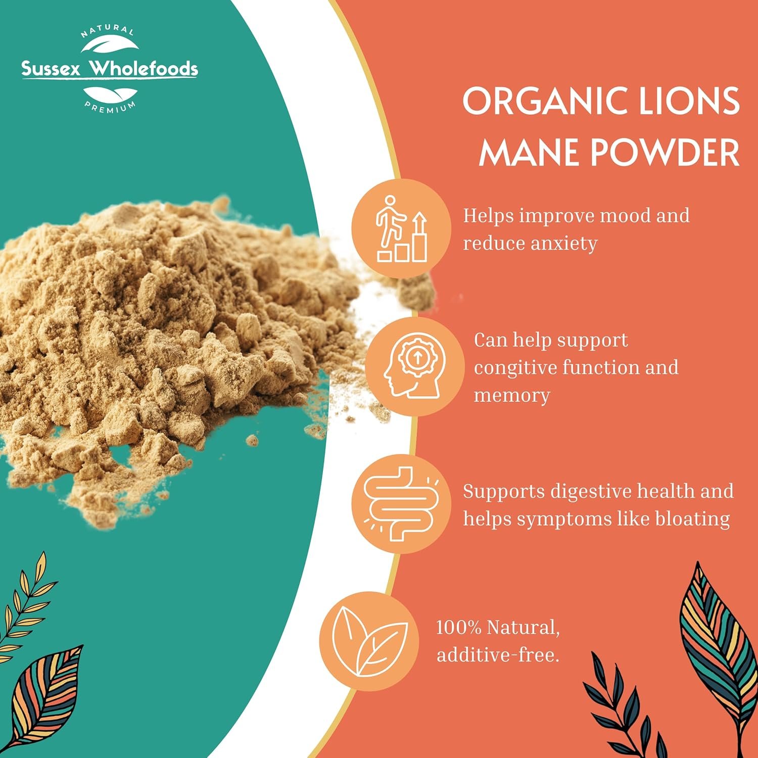 100% organic Lion’s Mane mushroom powder for natural cognitive support.