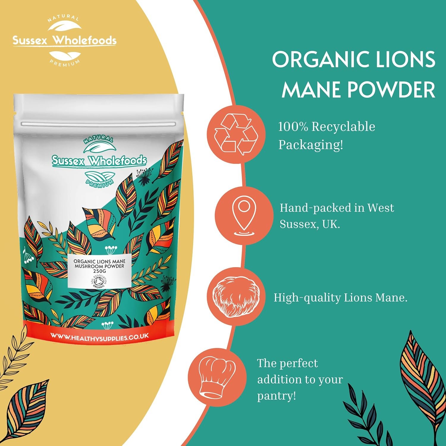 Unlock the power of nature with our Organic Lion’s Mane Mushroom Powder – a potent superfood known for its brain-boosting benefits. Revered in traditional wellness practices, Lion’s Mane is celebrated for its ability to support cognitive function, enhance mental clarity, and promote overall vitality. Whether you’re looking to sharpen your focus, improve memory, or simply add a nourishing superfood to your routine, this finely milled powder is the perfect addition.Our Organic Lion’s Mane Mushroom Powder is easy to incorporate into your daily diet. Simply stir it into your morning coffee, blend it into smoothies, or sprinkle it over your meals. Its mild, earthy flavour pairs well with both sweet and savoury dishes. Ideal for busy professionals, students, or anyone looking to naturally support their brain health, this superfood powder is your secret weapon for staying sharp and focused.