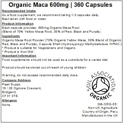 Each capsule provides 600mg of Organic Maca Root.