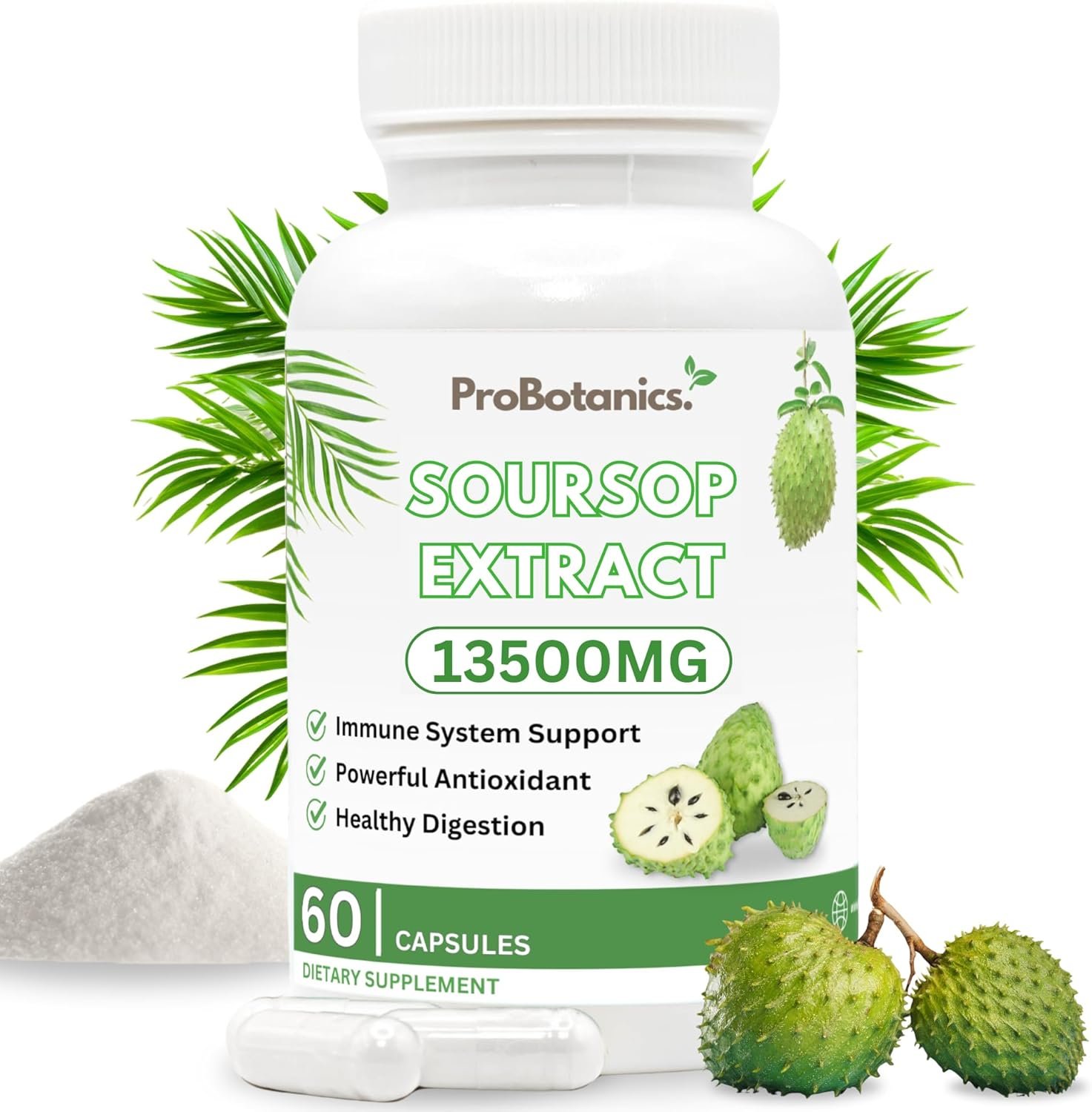 Organic Soursop Capsules | Full Spectrum 13500mg 30:1 Extract Per Serving | Potent Antioxidant & Immune Support – 60 Capsules