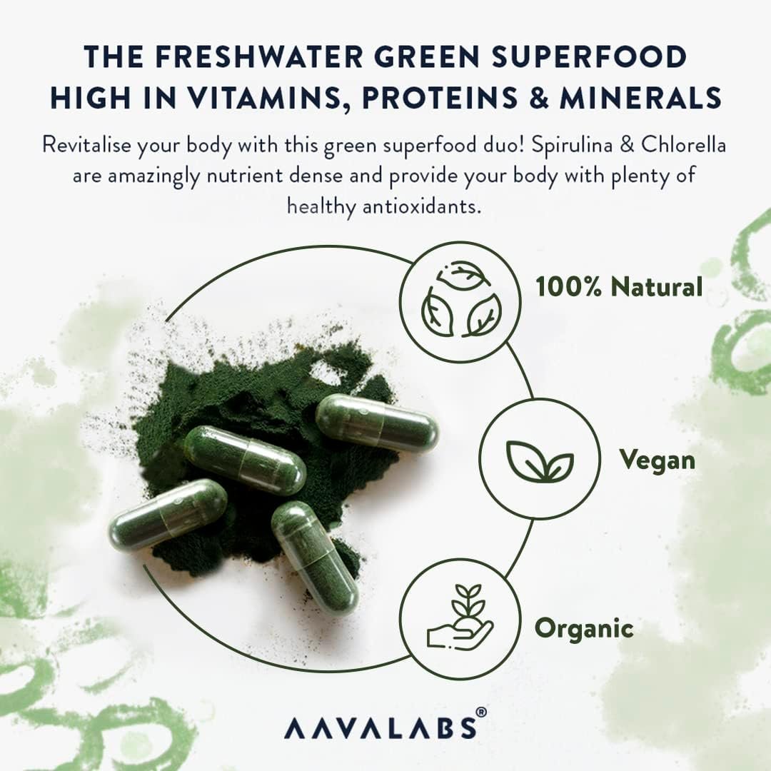➤ VERSATILE SUPER FOODS CAPSULES – Our Spirulina and Chlorella tablets are a vegan-friendly source of protein, iron, and vitamin B12, in powder-capsule form. A single daily dose provides 1800mg of pure algae. Prefer a superfood POWDER organic? No problem, these super greens capsules can be easily used in your favorite shakes and smoothies