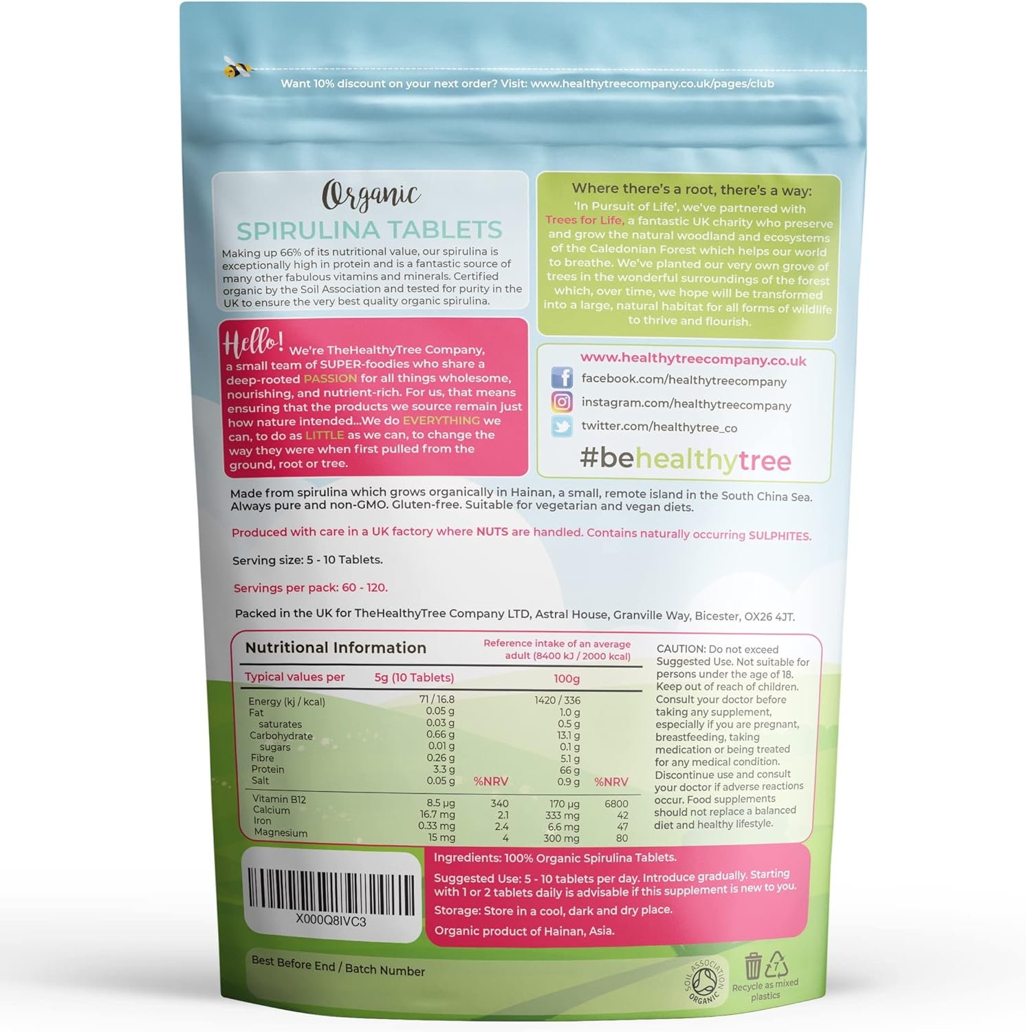Organic Spirulina Tablets by TheHealthyTree Company – Vegan, High in Vitamin B12, Protein, Magnesium, Iron and Calcium – UK Certified Pure Spirulina, 600 x 500mg (300g)