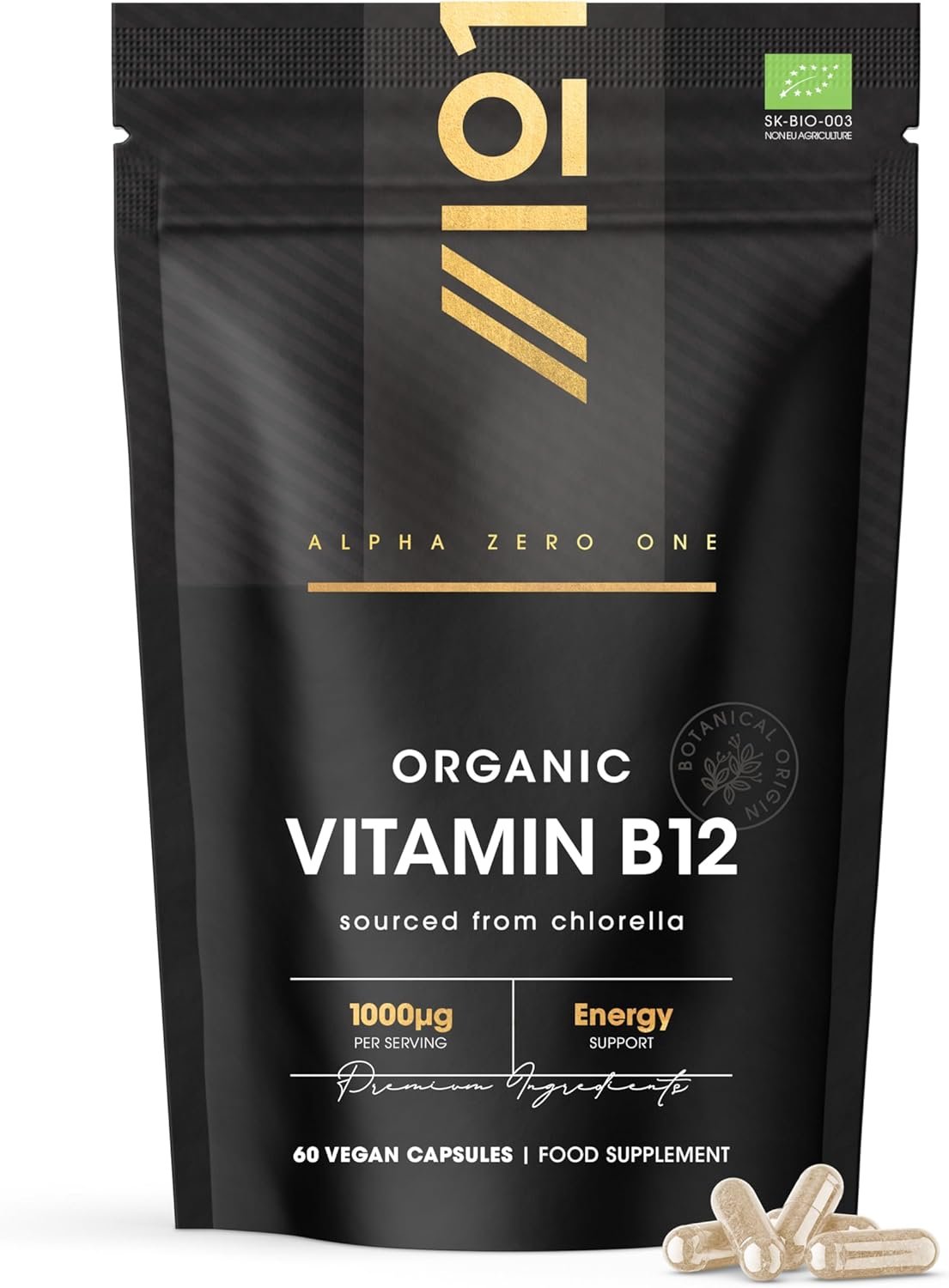 Organic Vitamin B12 1000mcg – Sourced from Chlorella – 60 Vegan Capsules – Contributes to Normal Functioning of The Nervous System – by Alpha01