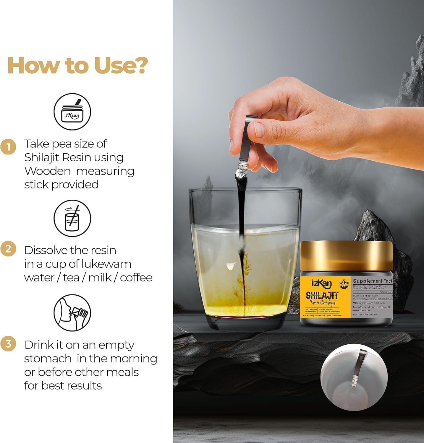 ✔️ 【Authentic Customized Sun Dried Gold Grade】 Izkan authentic Shilajit freshly harvested at 16,000 feet altitude of Himalayan Mountain in Gilgit Baltistan and provided in its purified resin form. We personally source, select, and oversee purification. Our goal is to unleash the true power of nature and bring you high-quality Shilajit supplements. It takes 8 WEEKS to get this in PURE SHILAJIT, unlike runny Resin cooked on heat and with 60-70% fillers.