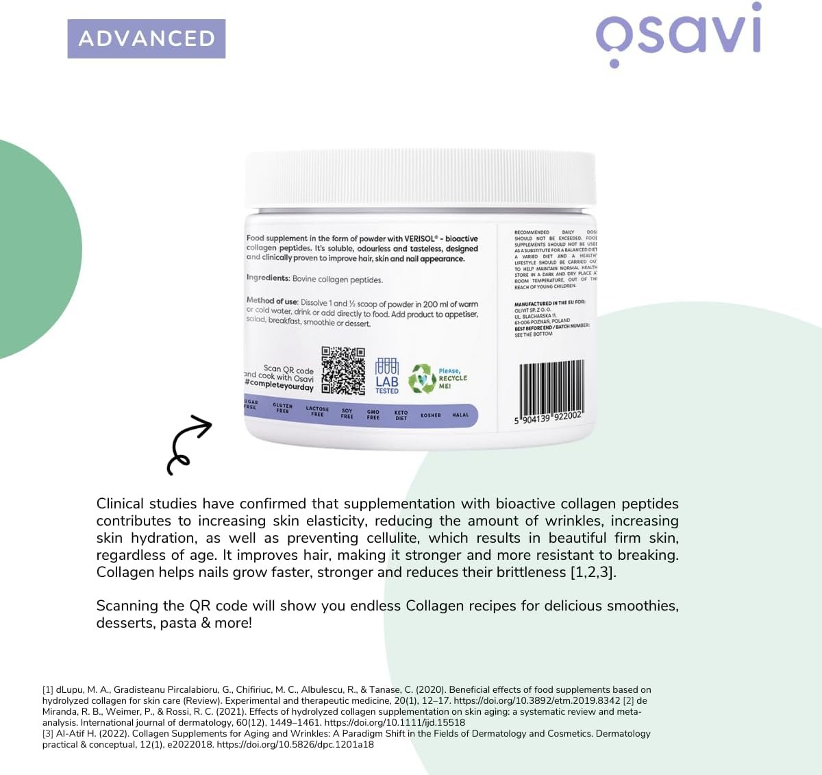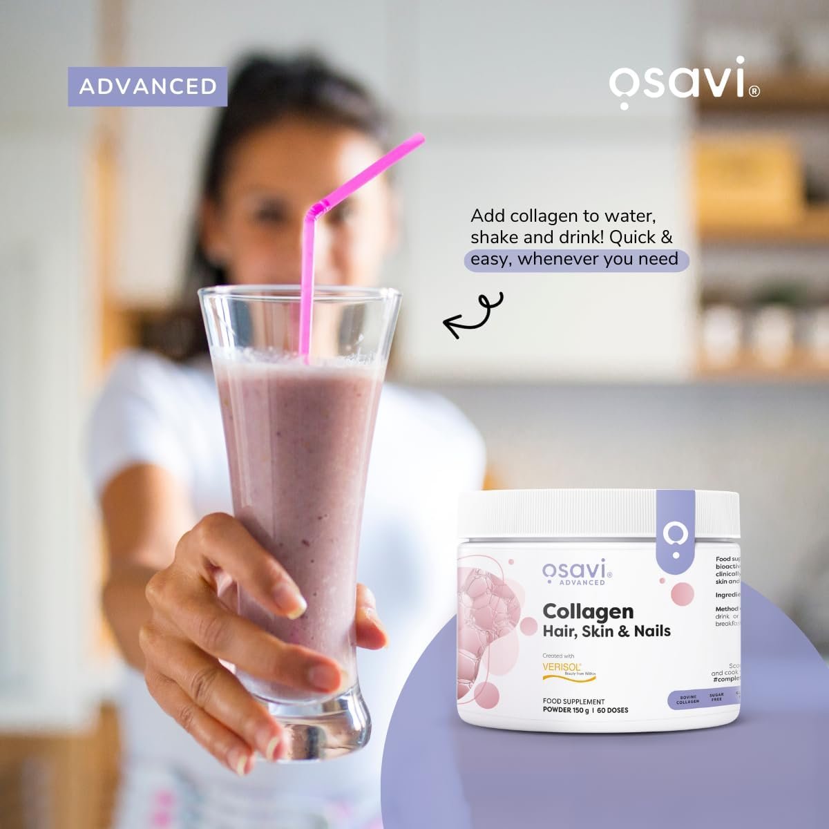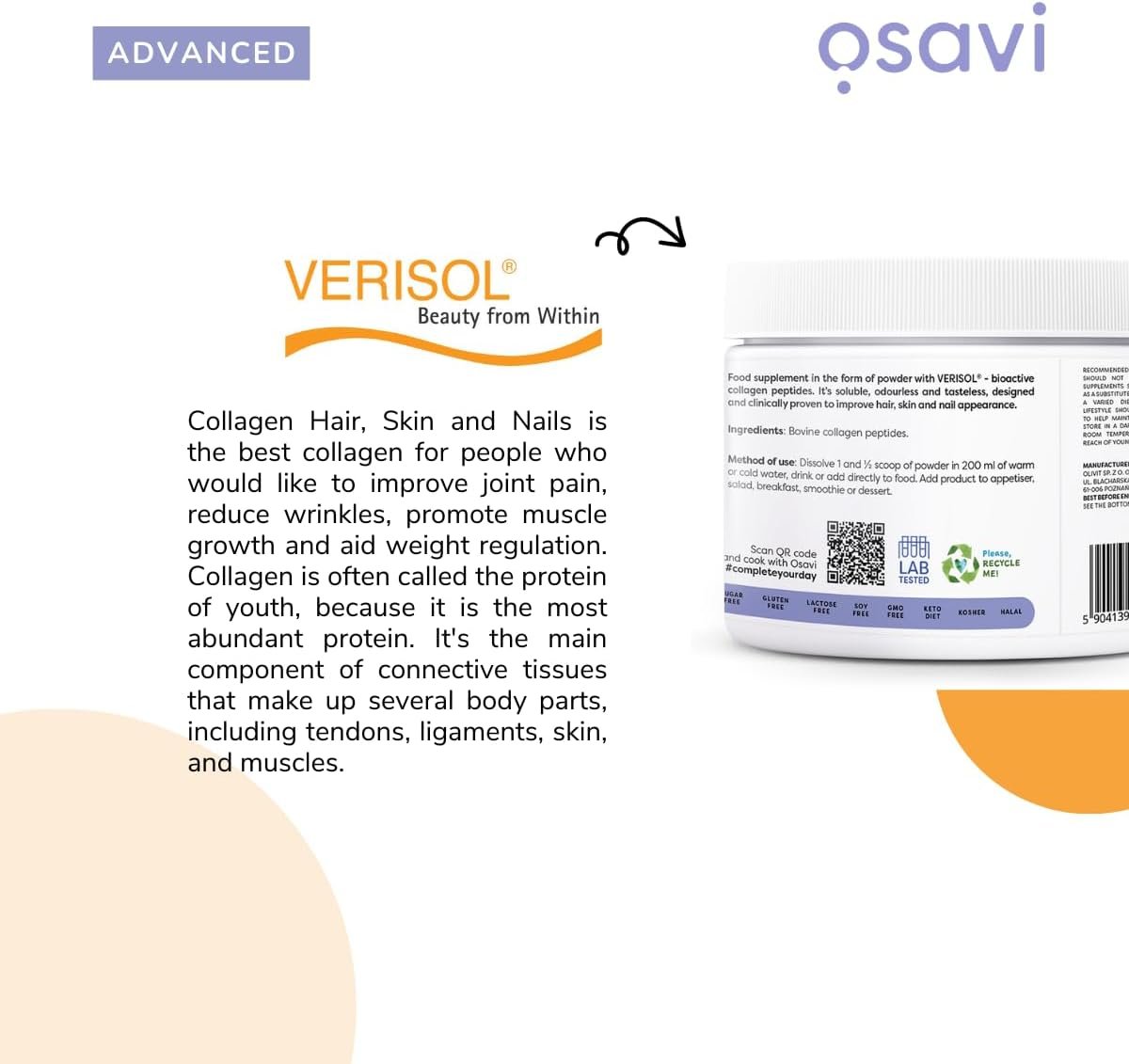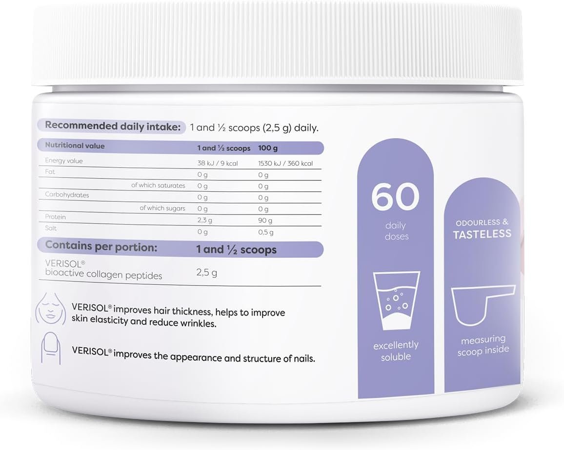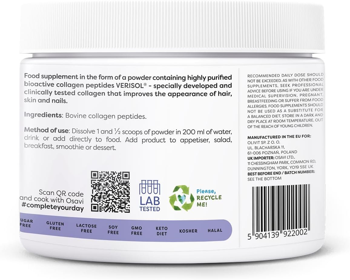 Osavi Collagen Hair, Skin & Nails – 150 g | VERISOL® Bioactive Peptides for Thicker Hair, Improved Skin Elasticity, Reduced Wrinkles, and Stronger Nails | Unflavored and Easily Soluble