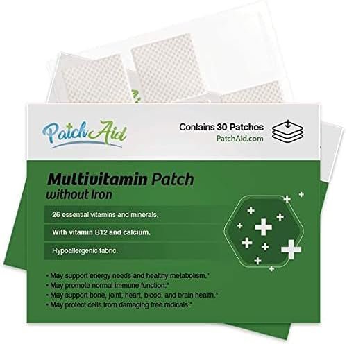 Patch Aid Multivitamin Without Iron – 30 Daily Topical Patches. 100% Natural & Vegan. Allergy & Filler Free. High Absorption and More bioavailable. Suitable for Sensitive stomachs & bariatric.