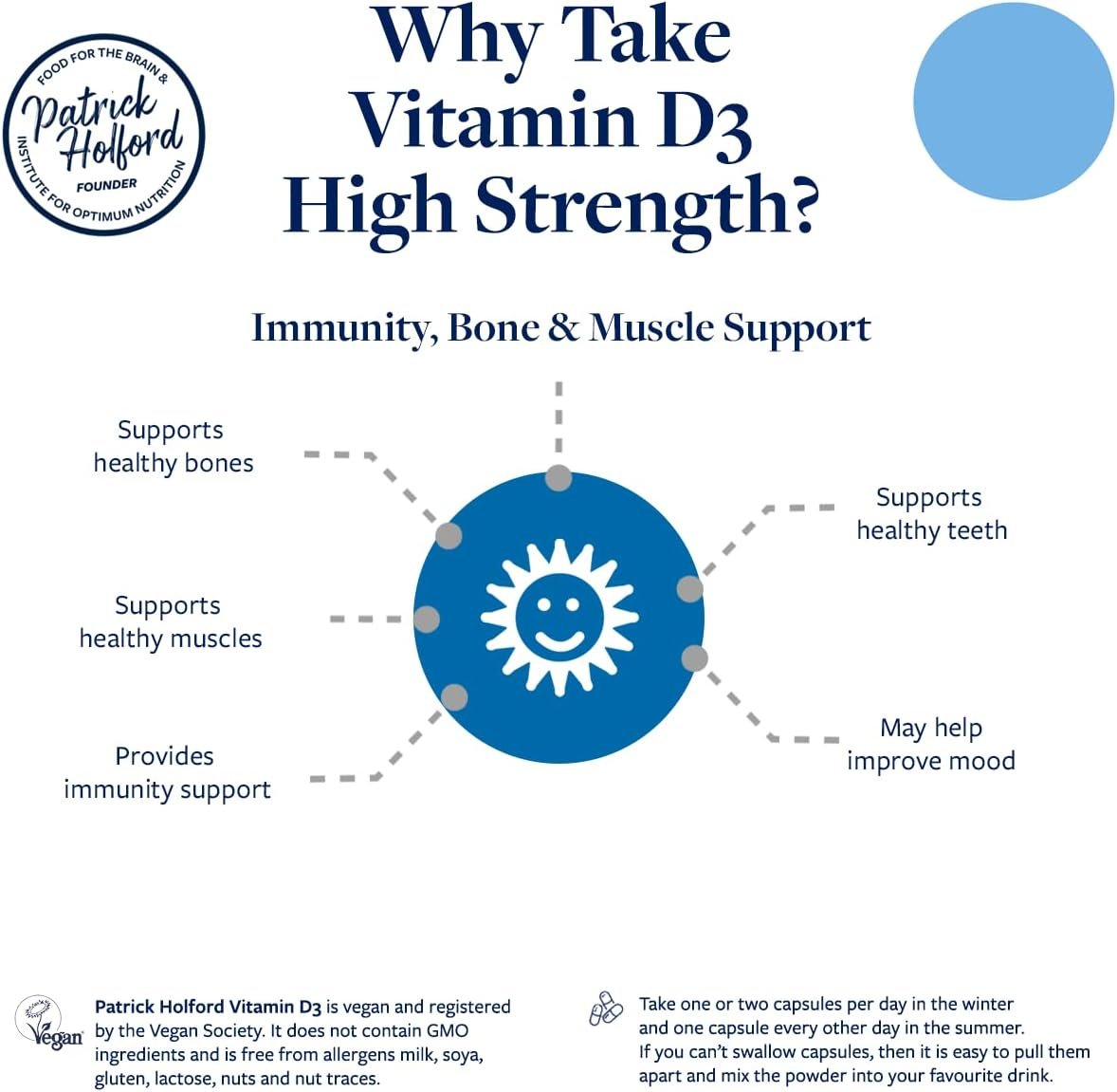 PATRICK HOLFORD Vitamin D High Strength/Vitamin D Supplement/for Immunity, Bone & Muscle Support / 1 Nutrient / 3000iu / D3 / Shiitake Mushroom Base/Naturally Sourced / 60 Capsules/Vegan /