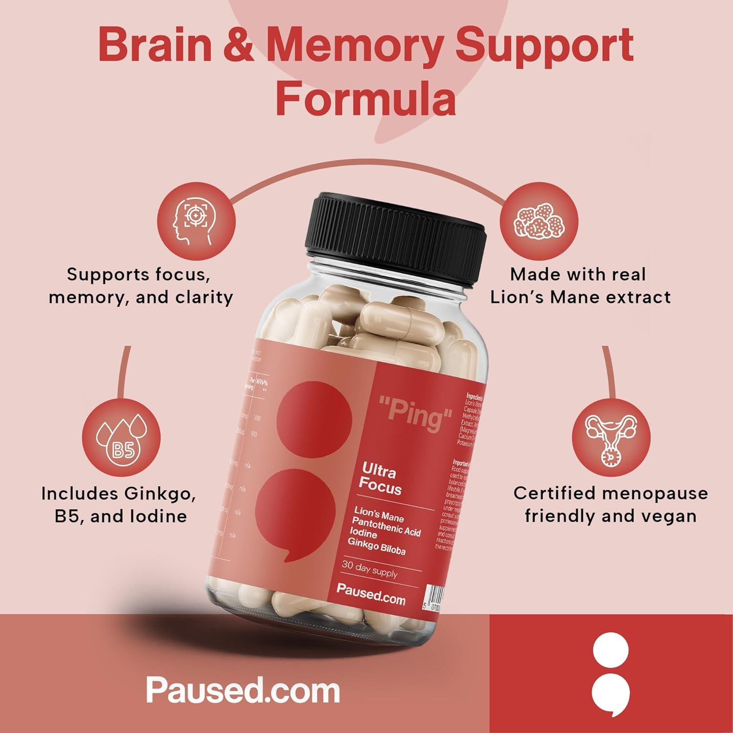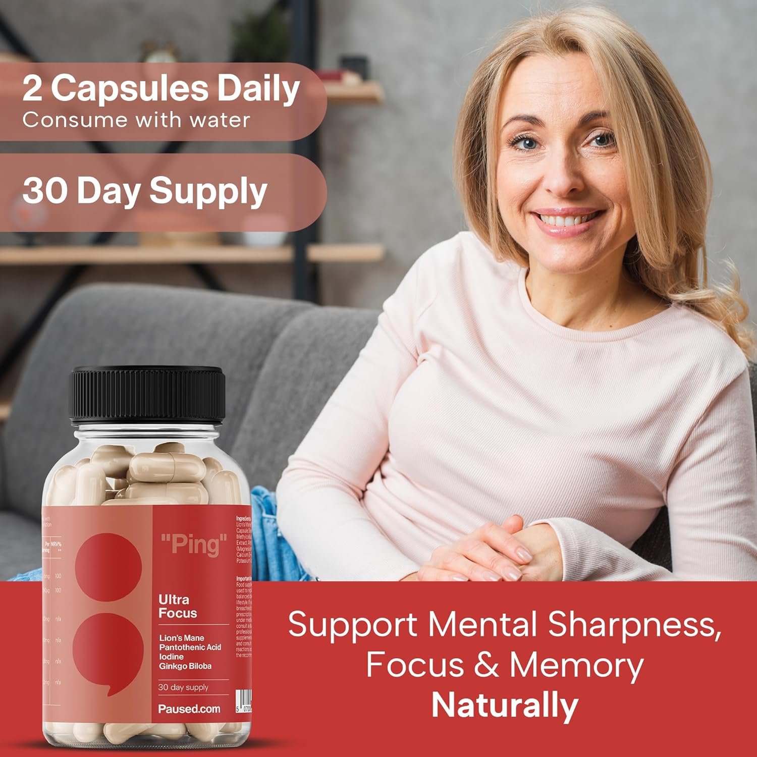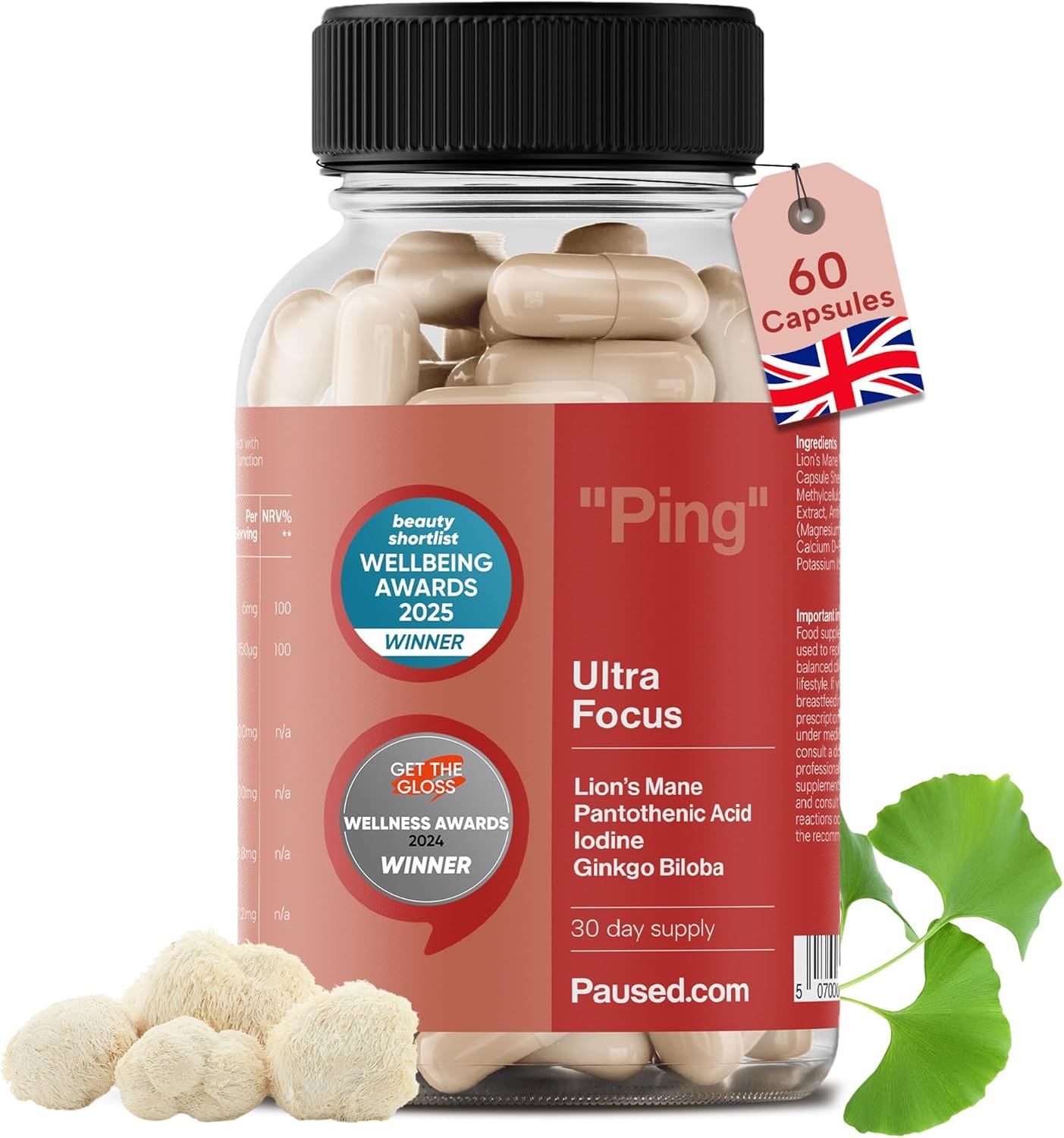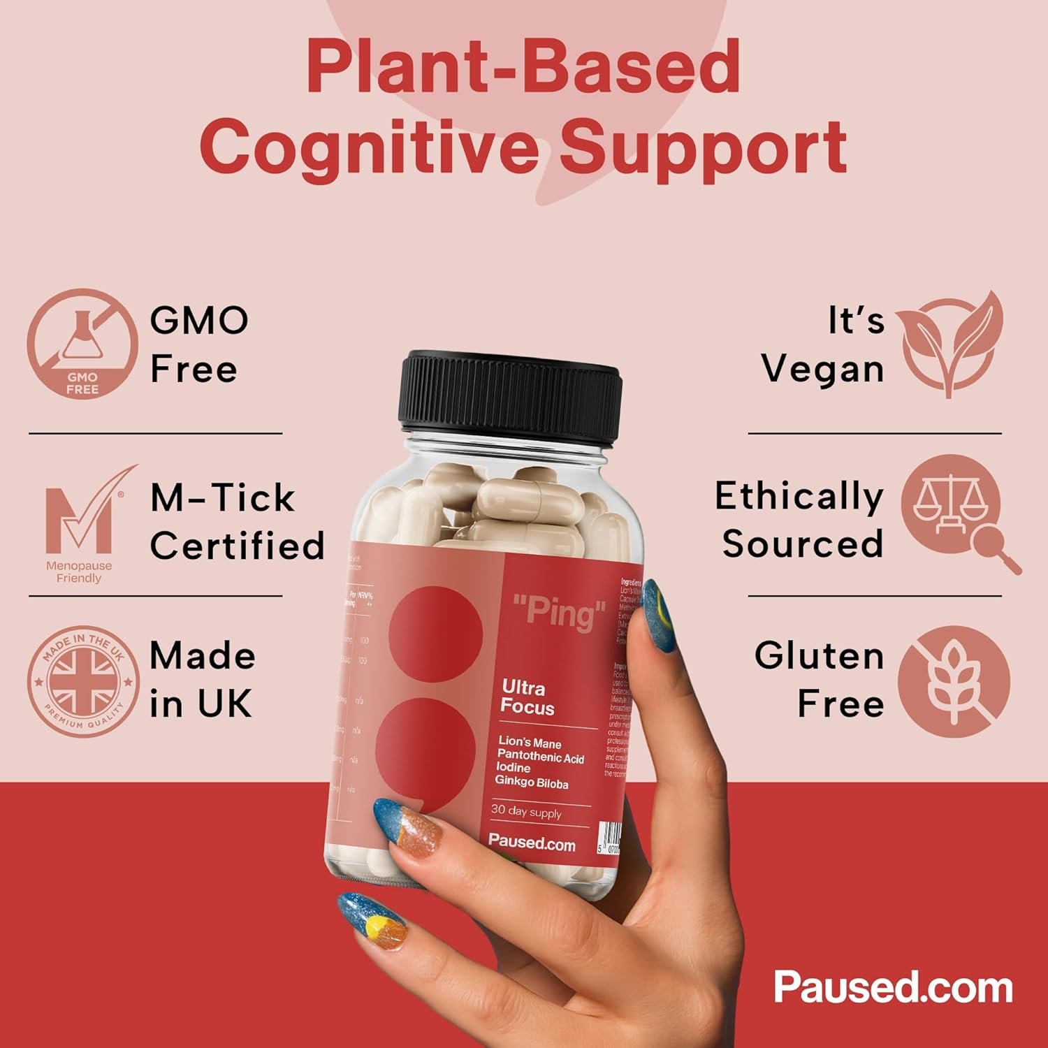 Paused Ultra Focus, Mind & Memory Supplement – 60 Capsules | 1 Month Supply Cognitive Enhancer with Lion’s Mane & Iodine | Boosts Energy, Improves Mood & Mental Performance | Vegan & Gluten-Free | UK
