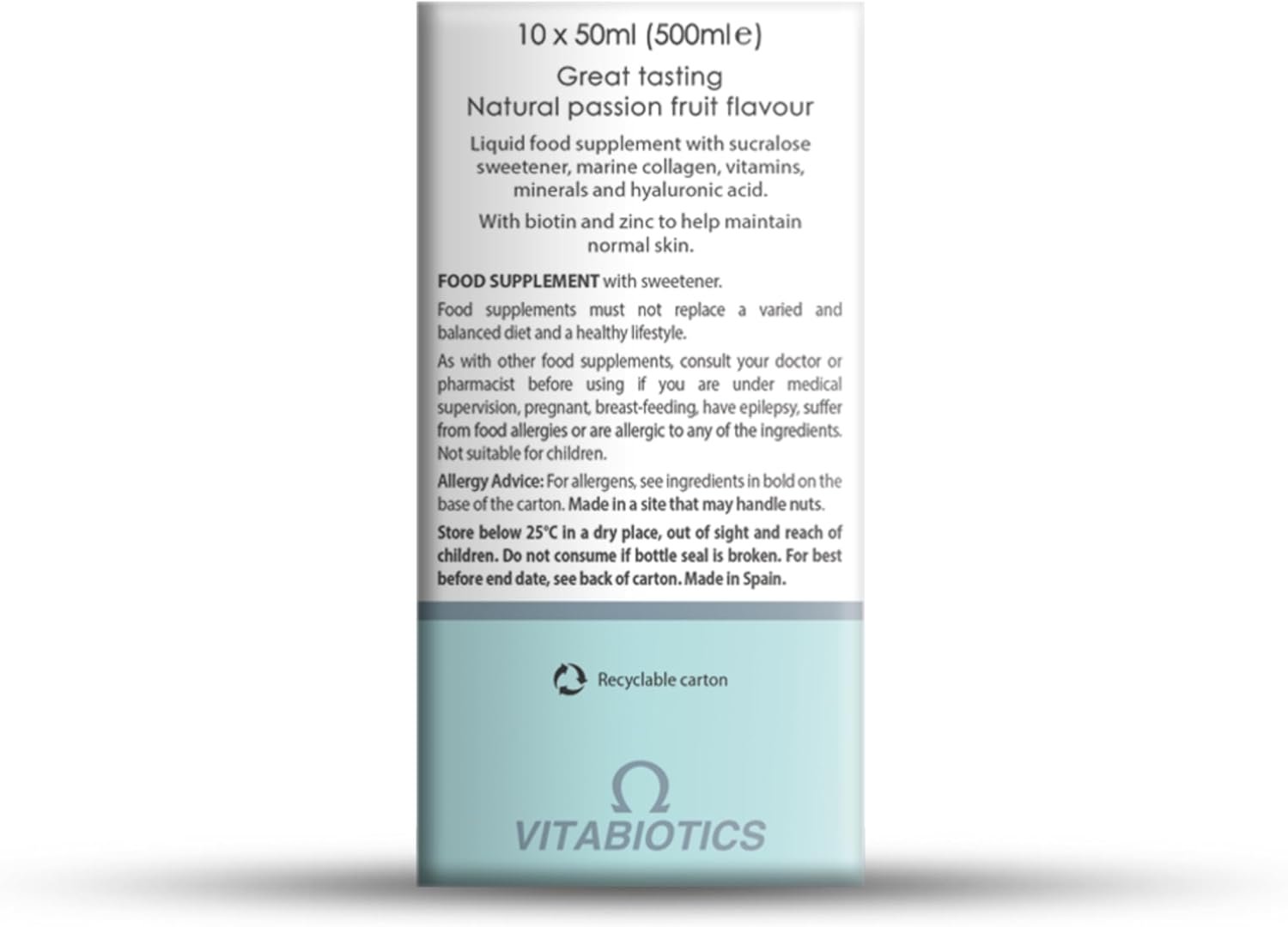 Developed by Vitabiotics nutrition experts, Perfectil Platinum Collagen skin drink is a great tasting liquid beauty supplement designed to boost the levels of collagen and hydration in the skin.This great tasting liquid beauty supplement is specifically targeted towards maintaining a radiant skin complexion, providing a premium blend of Hydrolysed Marine Collagen, vitamins and minerals, Hyaluronic Acid and Co-Q10.This advanced combination of nutrients concentrates on providing the building blocks of healthy skin and helping to diminish the visible signs of ageing, which can be caused by environmental and lifestyle factors such as pollution, smoking and UV radiation.Its unique blend of specialist bio-active nutrients are designed to help nourish the skin and maintain a radiant complexion, taking the science of beauty to the next level.