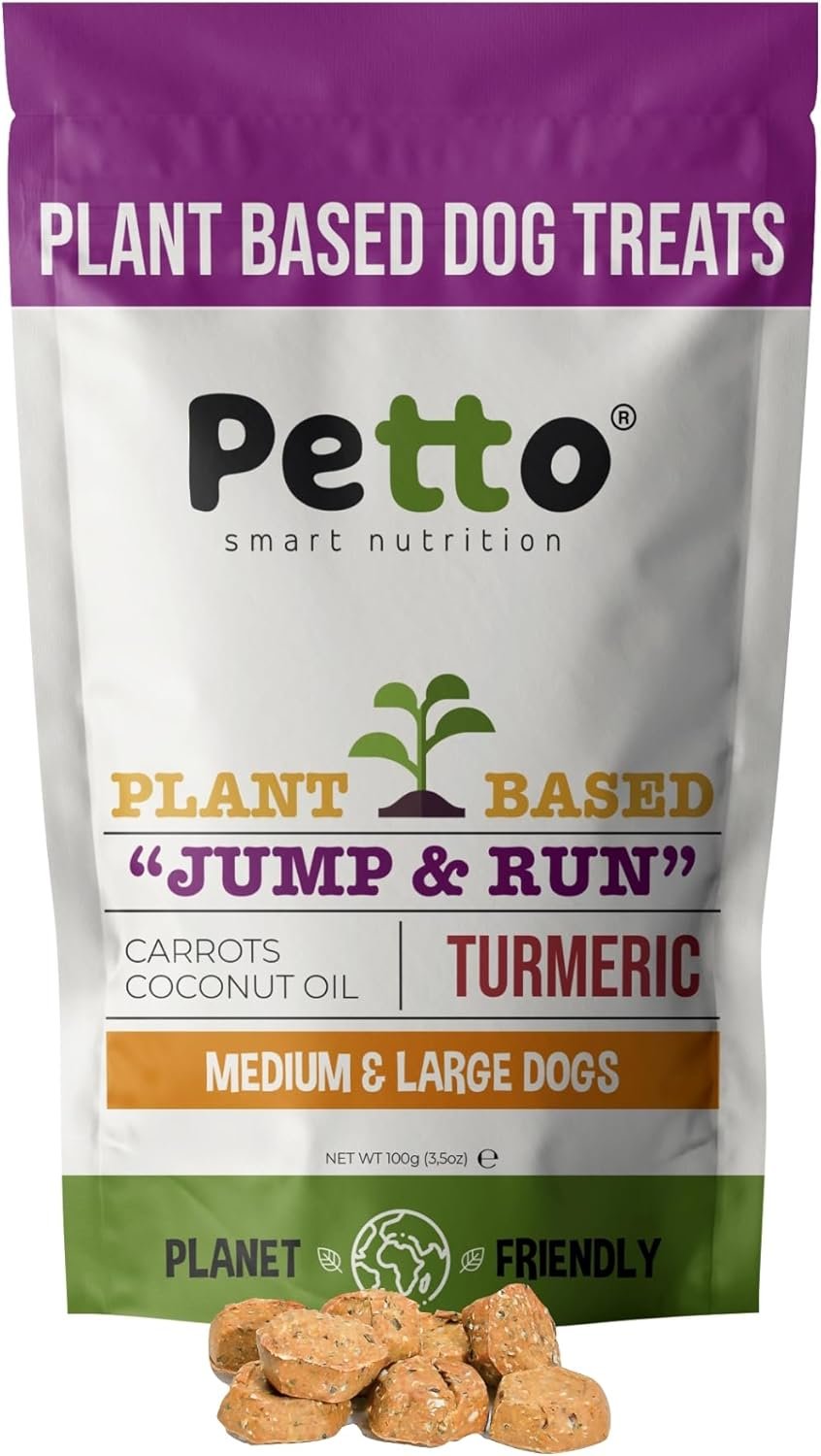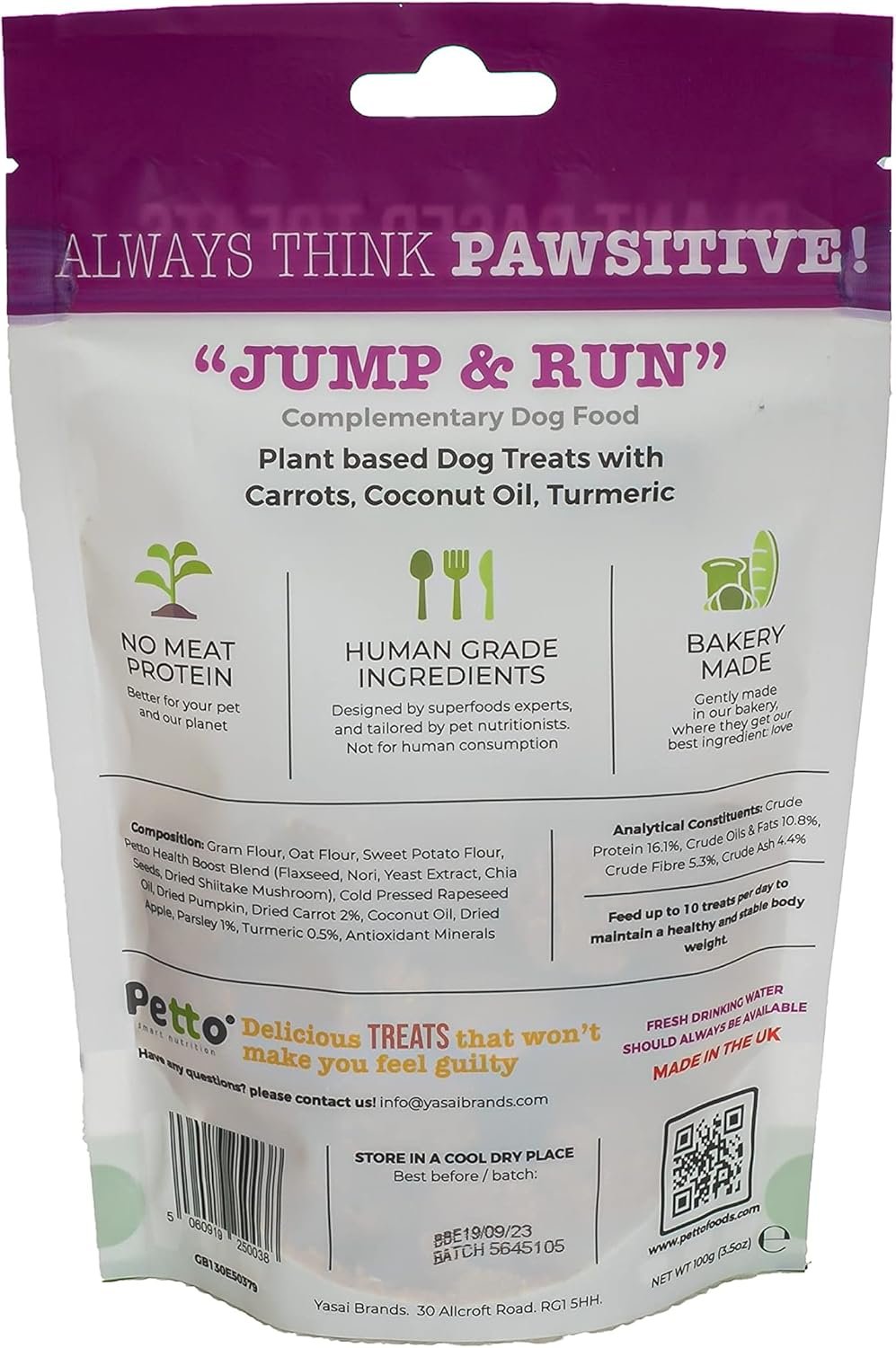 Petto Plant-Based Hypoallergenic Dog Treats 100g | Healthy & Meat-Free Training Bites | Human Grade & Bakery Made with Carrots, Coconut Oil & Turmeric