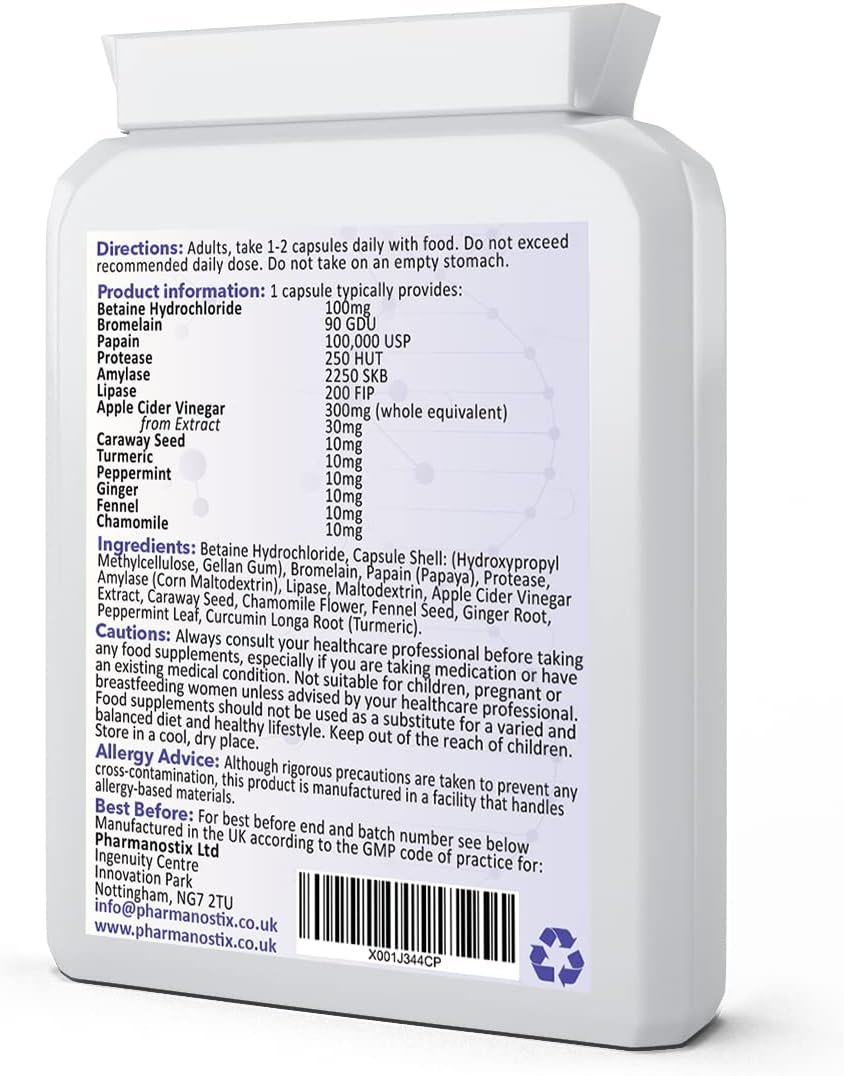 PharmaZyme Digestive Enzymes – 90 Vegan Capsules – Plant Digestive Enzyme Complex- Bromelaine, Papaine, Betaine, Protease, Amylase, Lipase & Peppermint for Indigestion – UK Manufactured