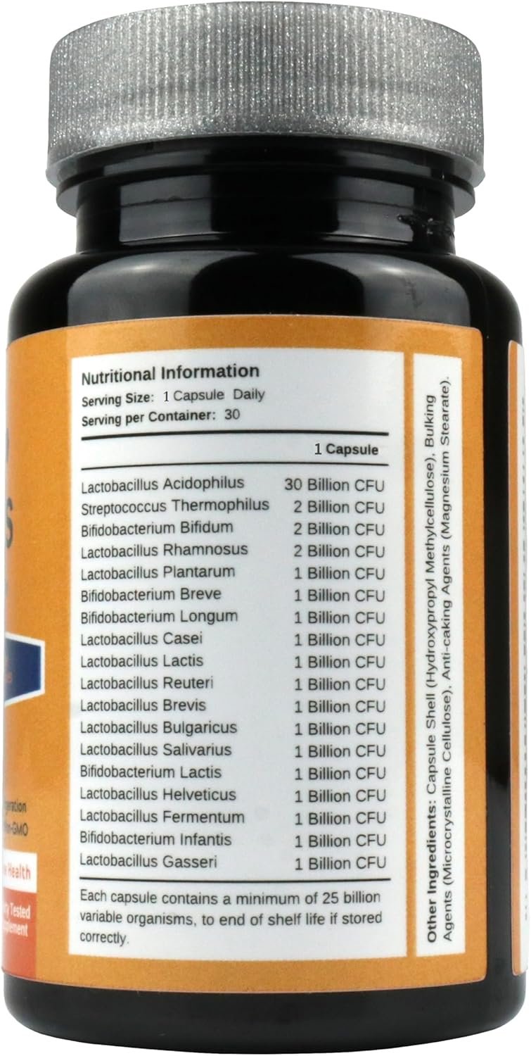 Powerful 50 Billion Cfu Probiotics 18 Strains, Stomach Acid Resistant, Shelf Stable Highest Strength Bacterial Cultures Keeps Digestive System Healthy 60 Vegan Capsules For Men And Women