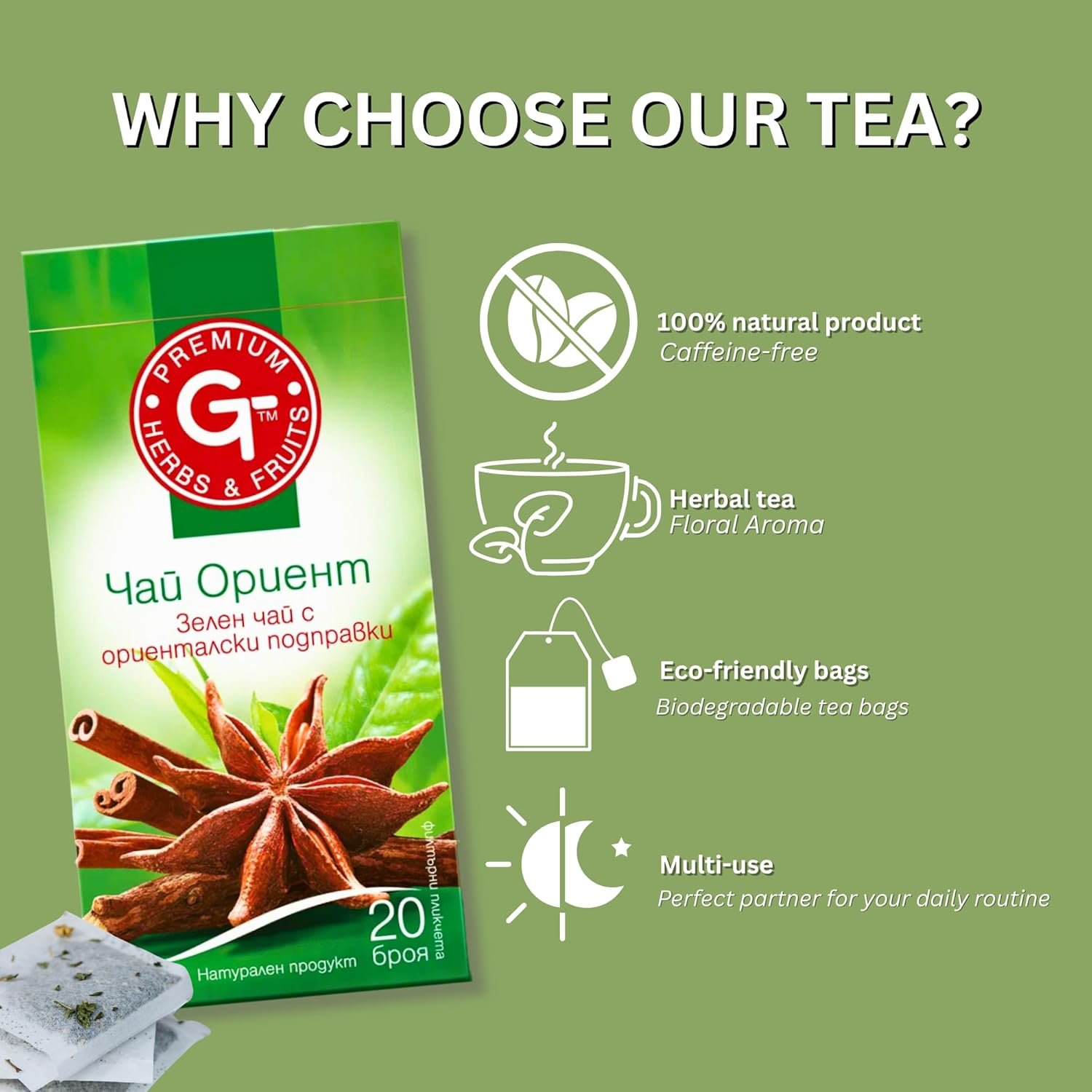✔ Supports Immunity & Digestion: This oriental green tea is a blend of cinnamon, licorice root star and anise seeds which naturally helps in immunity and digestion which helps to warm and soothes the stomach.
