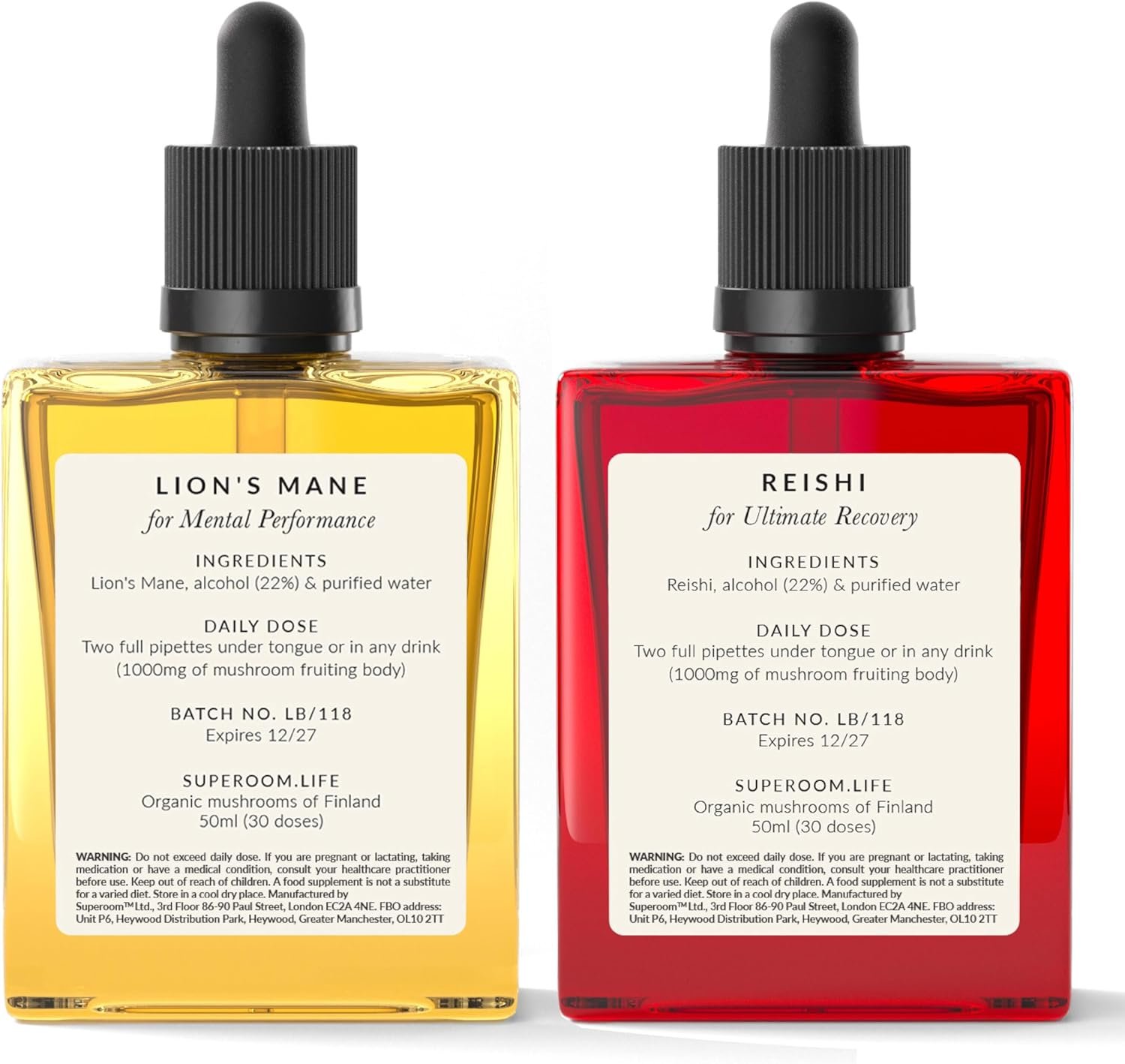 One daily dose of Superoom has the same alcohol content as a banana (0.44ml), with the alcohol solution boosting absorption and giving it a 3-year shelf life.