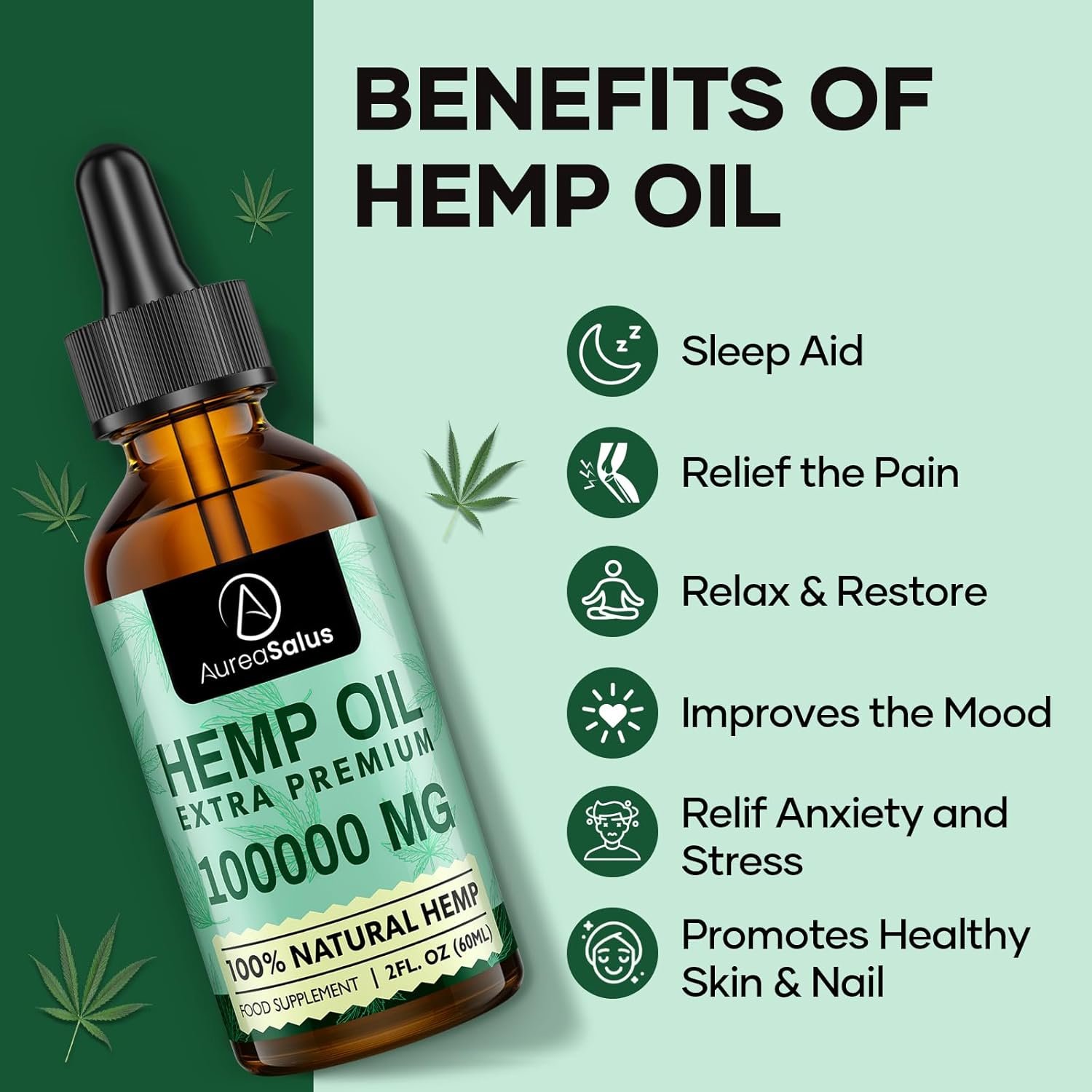 Calm Your Mind: AureaSalus Natural Oil is rich in fatty acids and amino acids, making it an excellent promoter of health. 100,000 mg of maximum strength Premium Oil will help you calm down and focus throughout the day. Whether you’re looking for calm or vitality, our oil can enhance your daily life.
