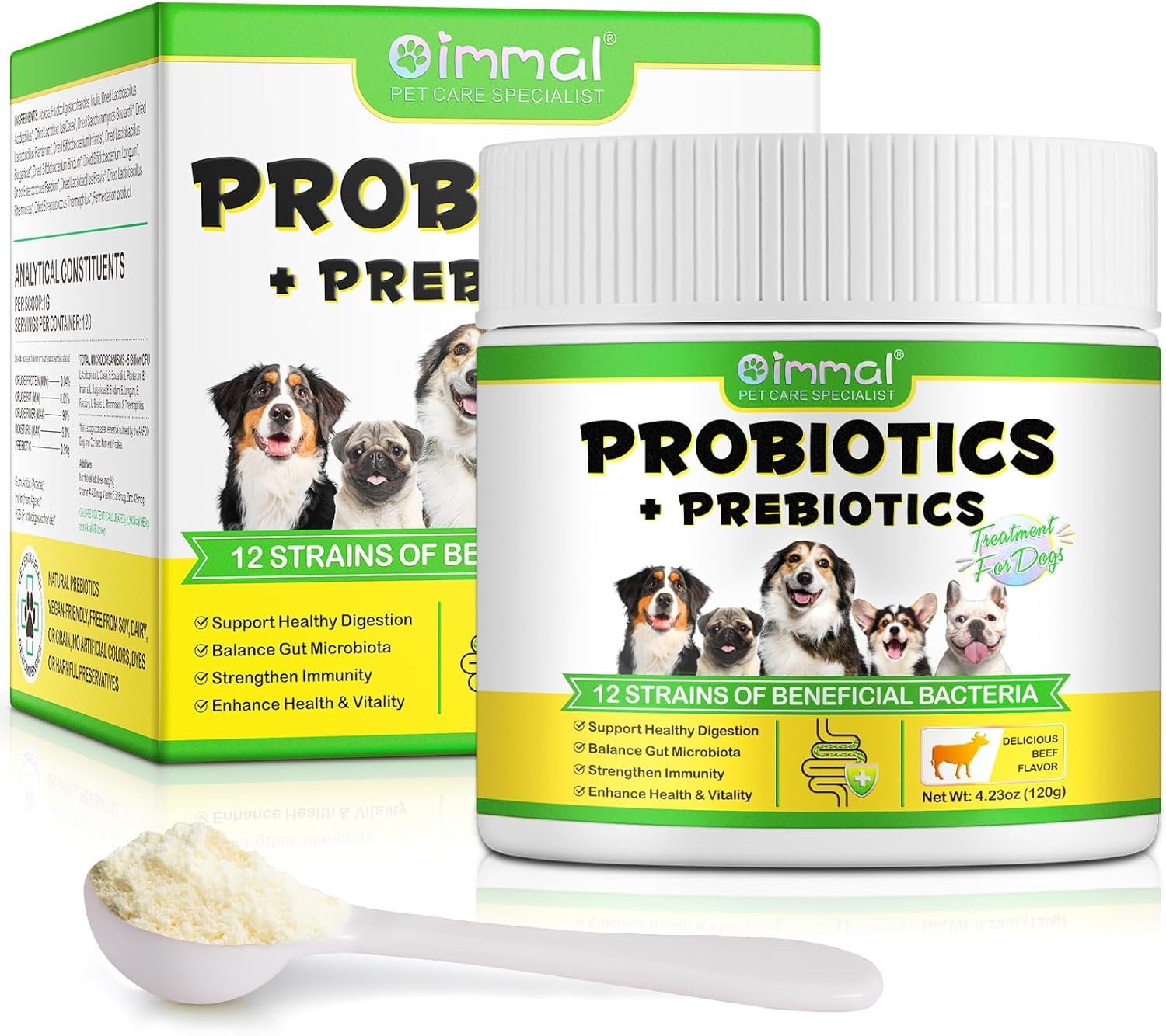 Probiotic Powder for Dogs, Dog Pre and Probiotic Supplement for Gut Health, Digestive Support, All Ages and Breeds with Sensitive Digestion((1 Pot (120g))