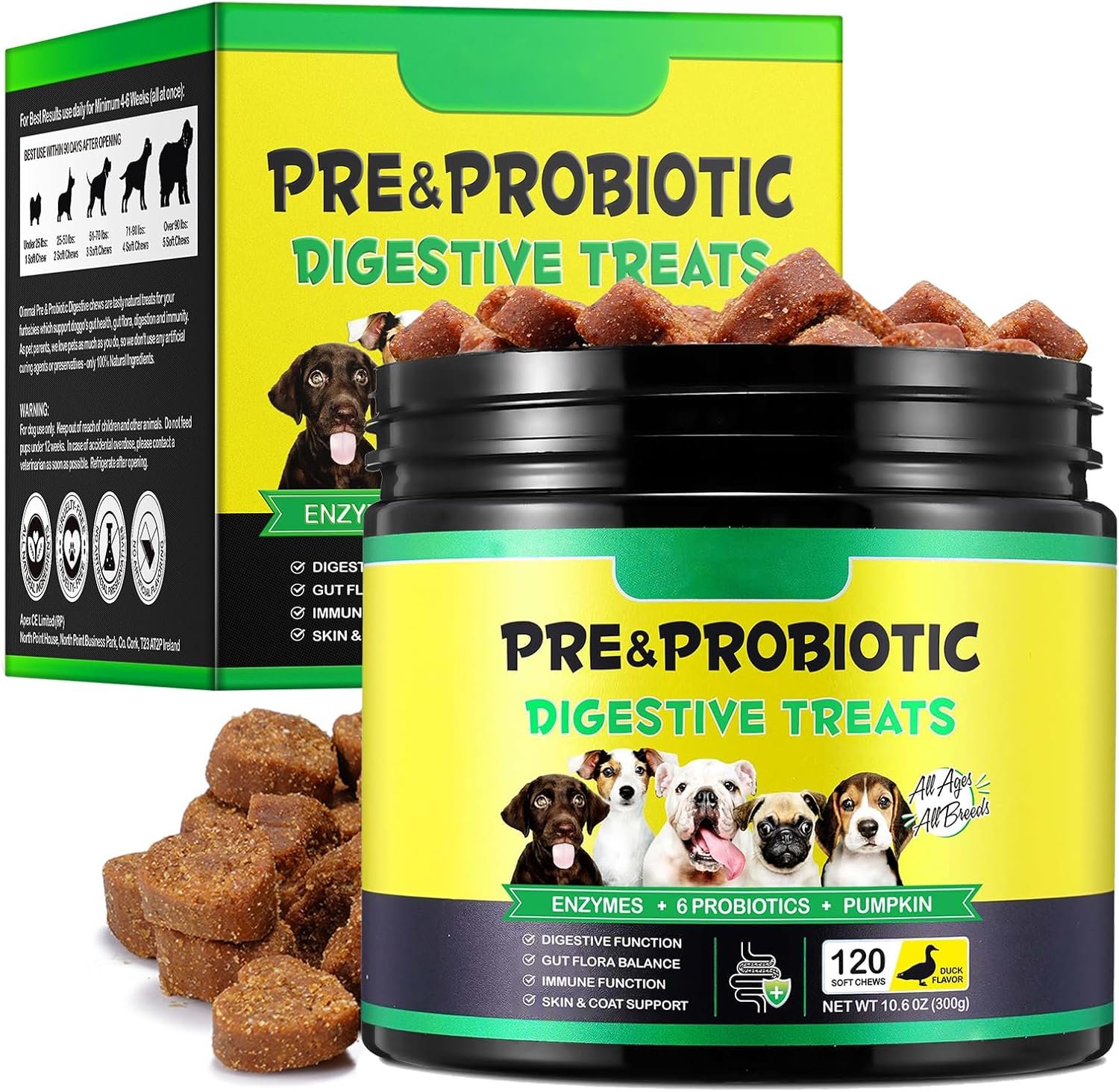 Supports Overall Wellness: More than just probiotics, these chews help balance your dog’s diet with gut-friendly nutrients. Perfect for daily use, they seamlessly integrate into meals to keep long-term health and vitality.